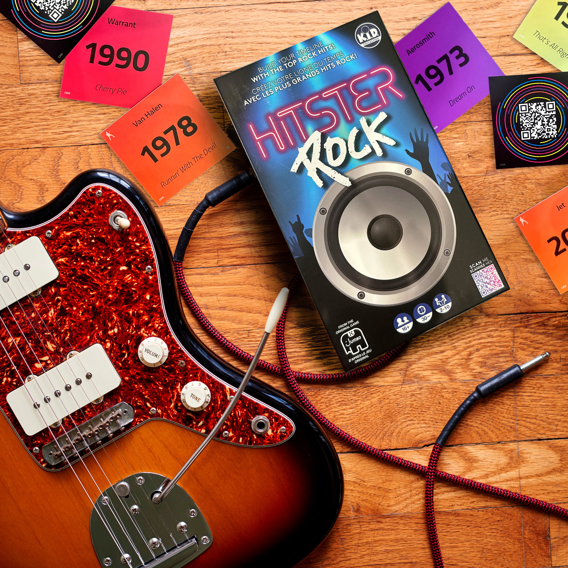 Dive into Hitster Rock and relive the greatest rock classics of all time! Put your knowledge to the test with this exclusive edition featuring legendary rock songs. The first player to correctly place 10 hits is crowned Hitster.