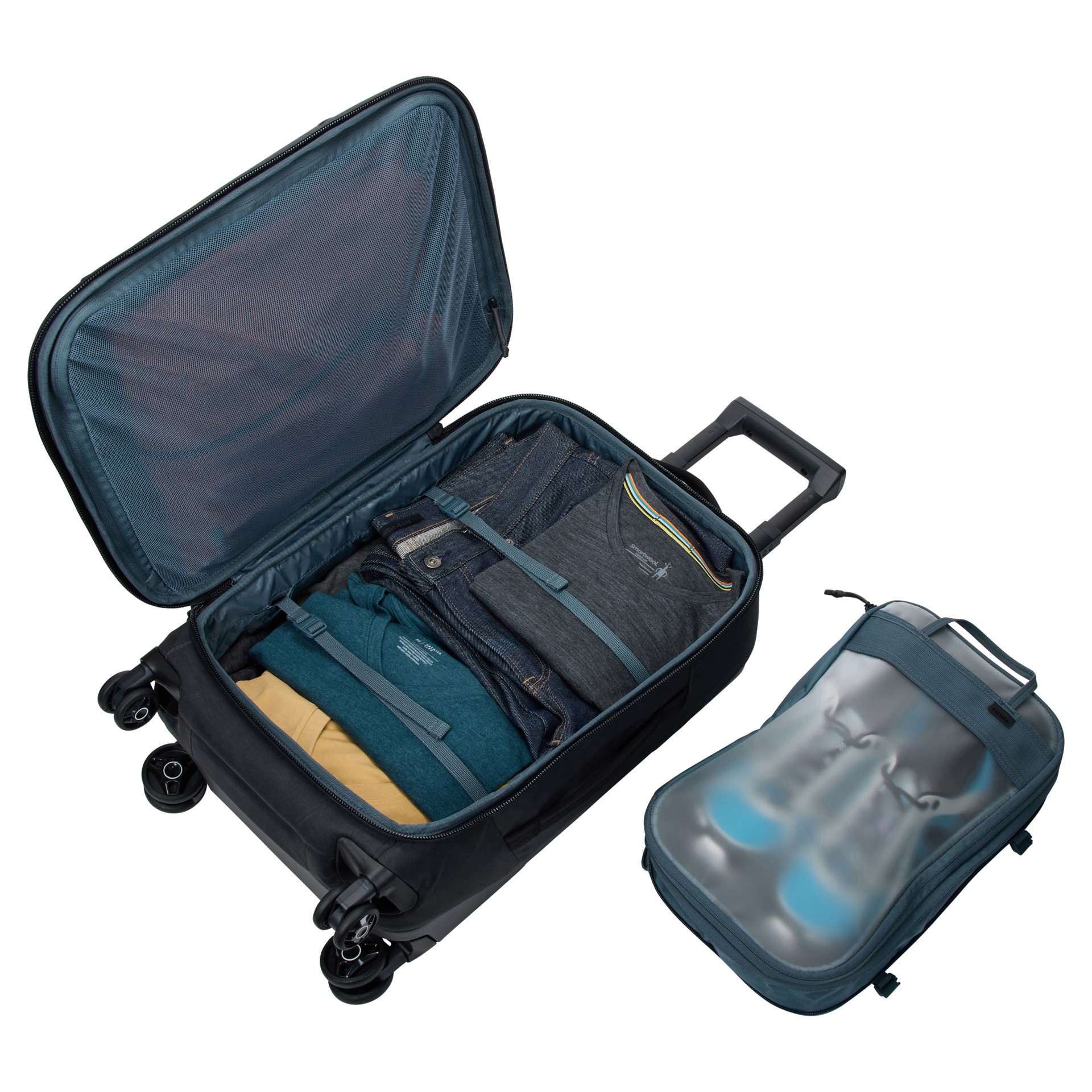 The Thule Aion Carry-On is a durable travel bag for commuting or adventure, featuring a removable compression packing cube that maximizes storage space and can also be used independently as a travel bag.