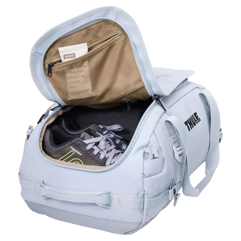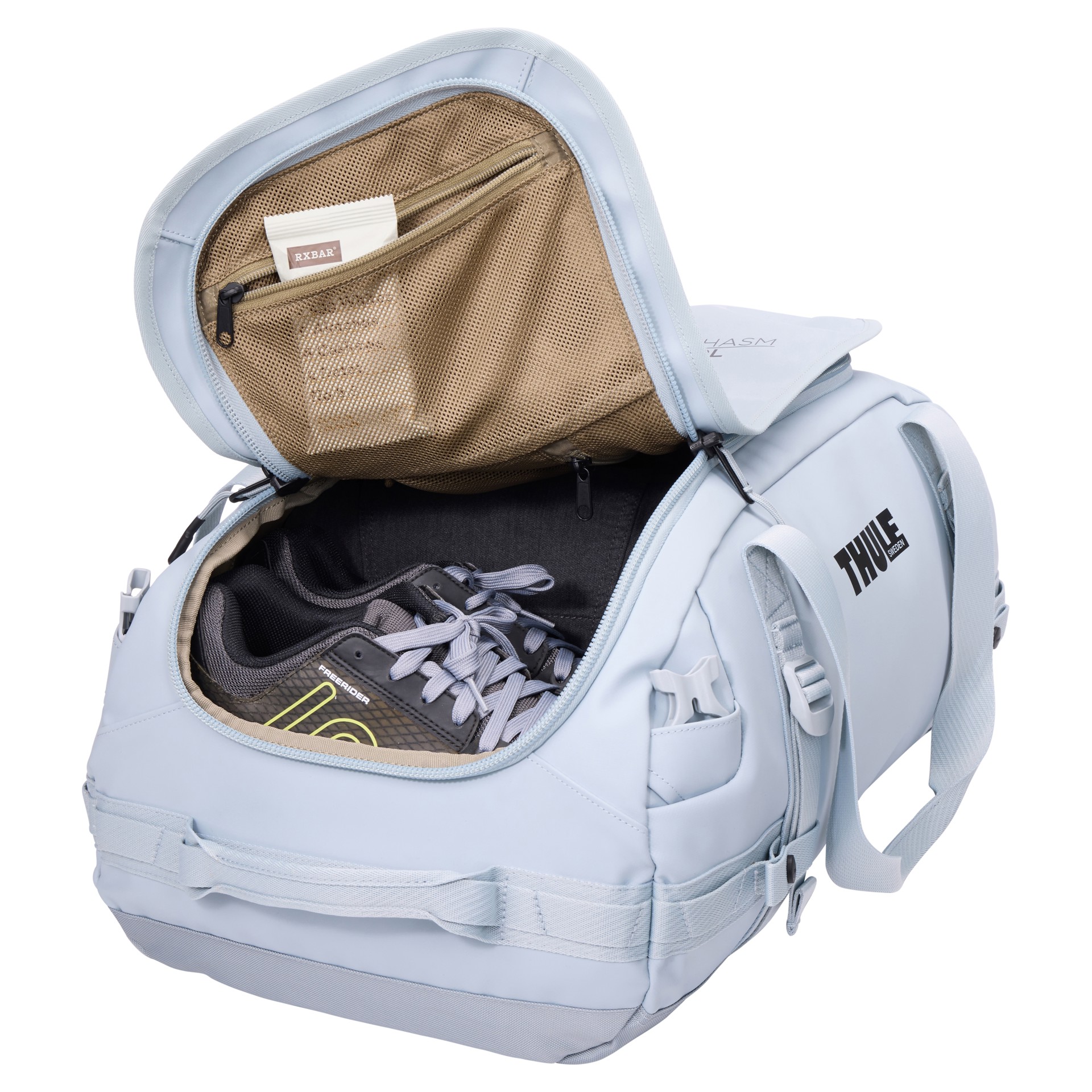 These duffel bags convert into a backpack with padded straps that tuck away when not in use. The wide opening makes it easy to pack all your gear, while the interior mesh pockets help with organization.