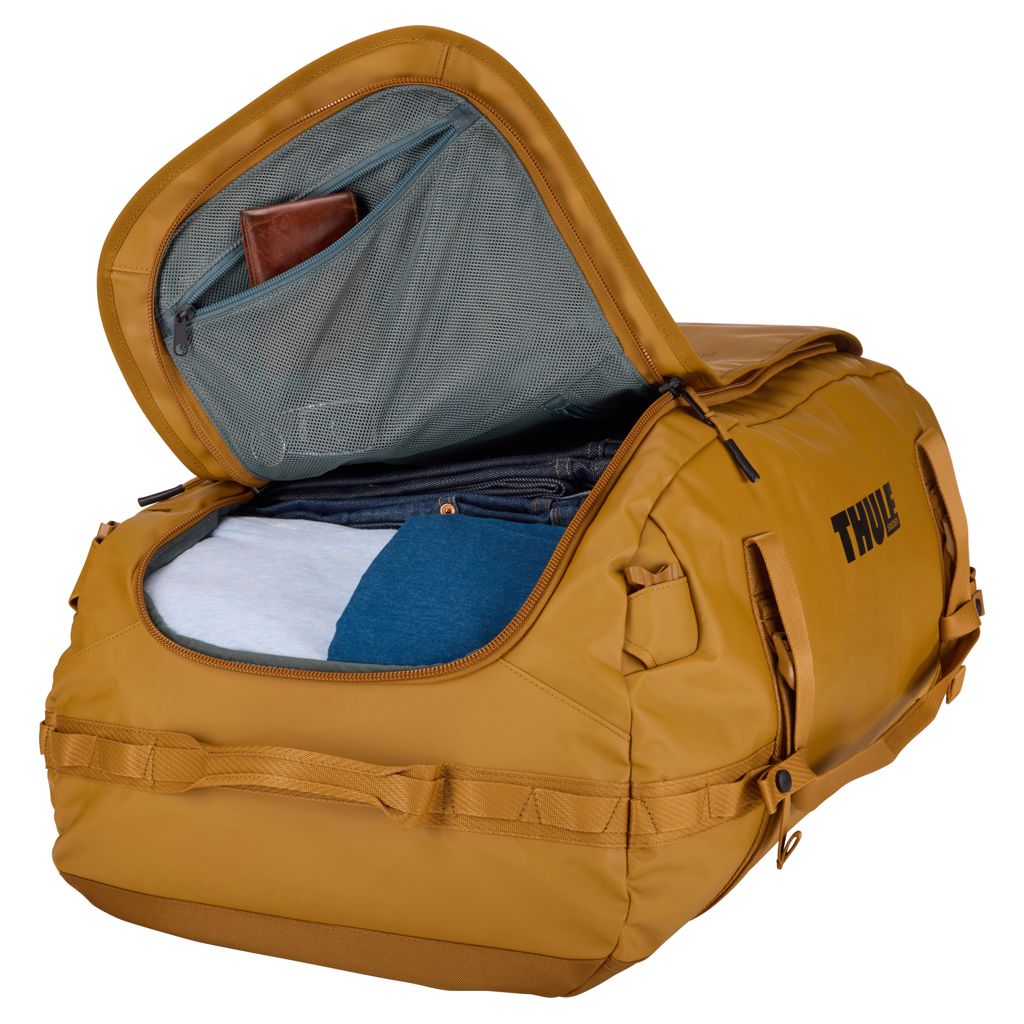 These duffel bags convert into a backpack with padded straps that tuck away when not in use. The wide opening makes it easy to pack all your gear, while the interior mesh pockets help with organization.