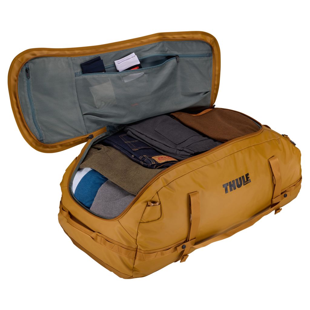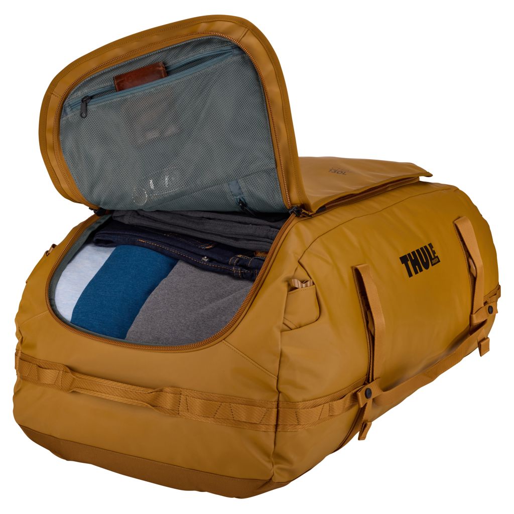 These duffel bags convert into a backpack with padded straps that tuck away when not in use. The wide opening makes it easy to pack all your gear, while the interior mesh pockets help with organization.
