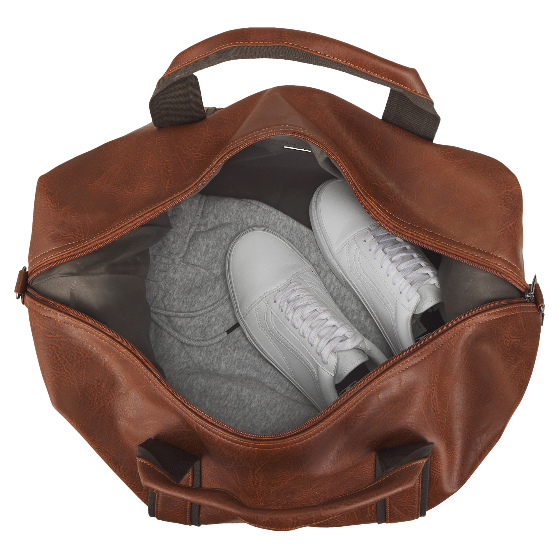 • Crafted from a blend of faux leather and canvas trim, our bag combines style and durability.