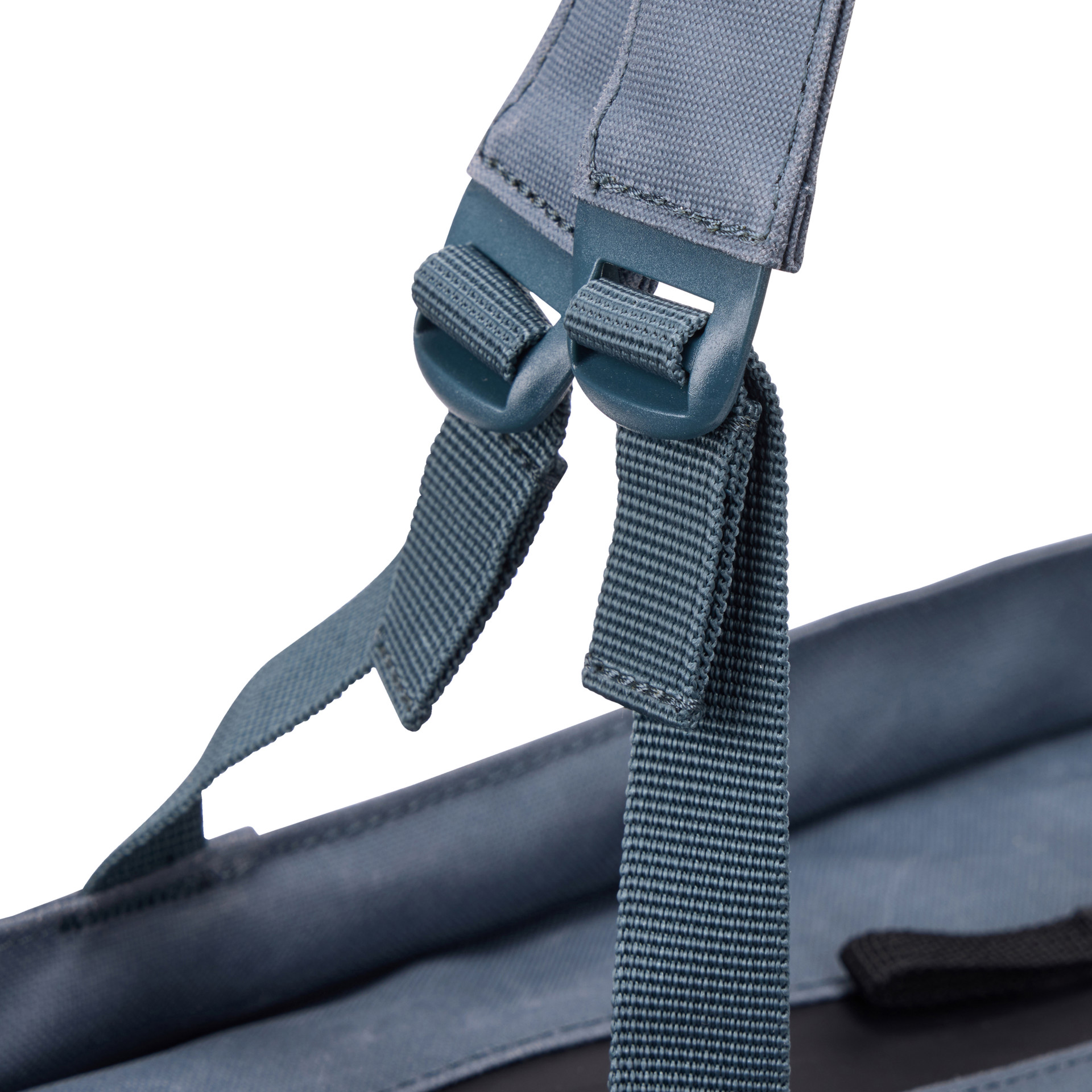 The bag’s robust, durable waxed canvas develops a unique patina over time and features a PFC-free water-resistant finish, avoiding harmful chemicals for the environment.