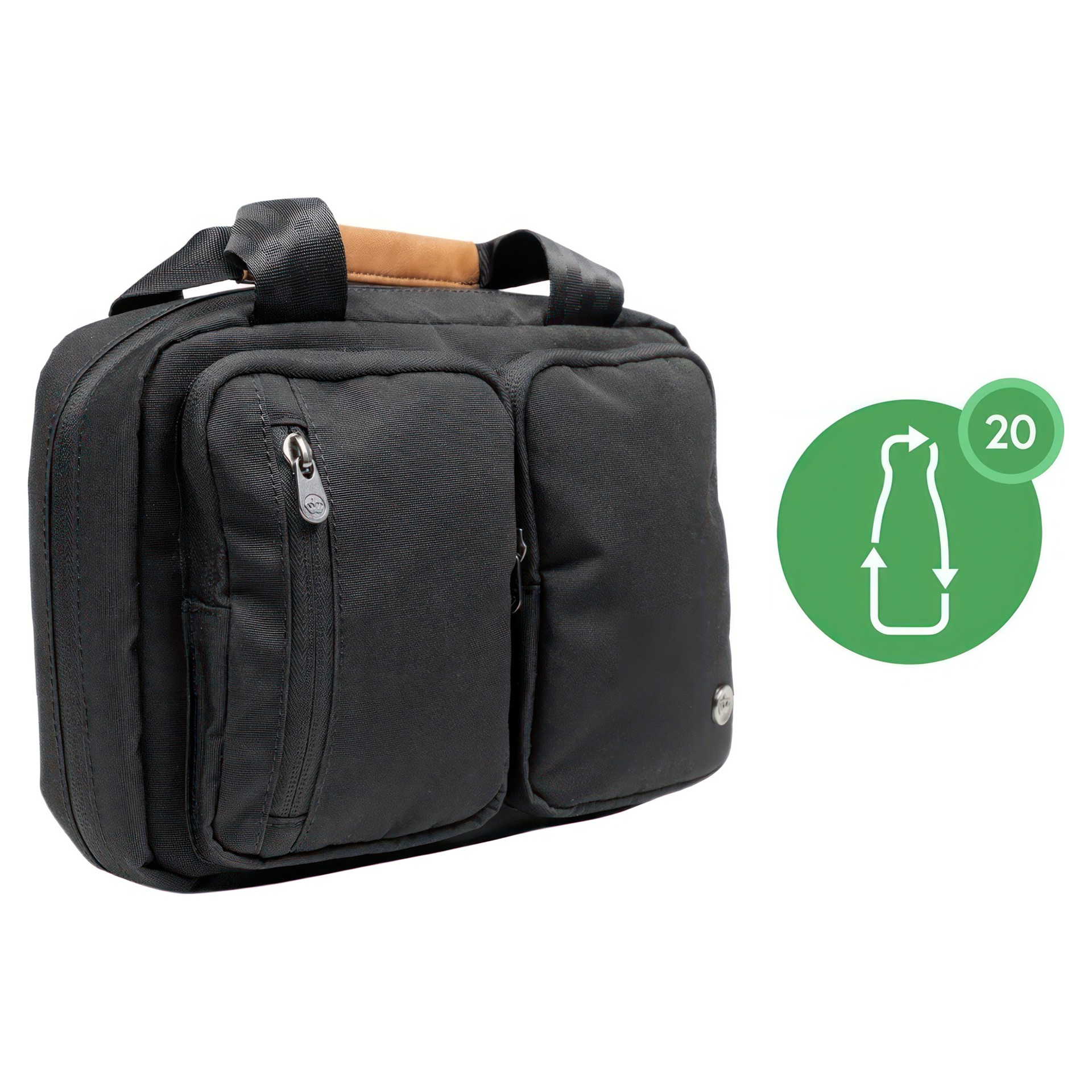 Made from weather-resistant, recycled 600D polyester outer fabric and a recycled 210D satin polyester inner fabric - using 20 post-consumer water bottles.