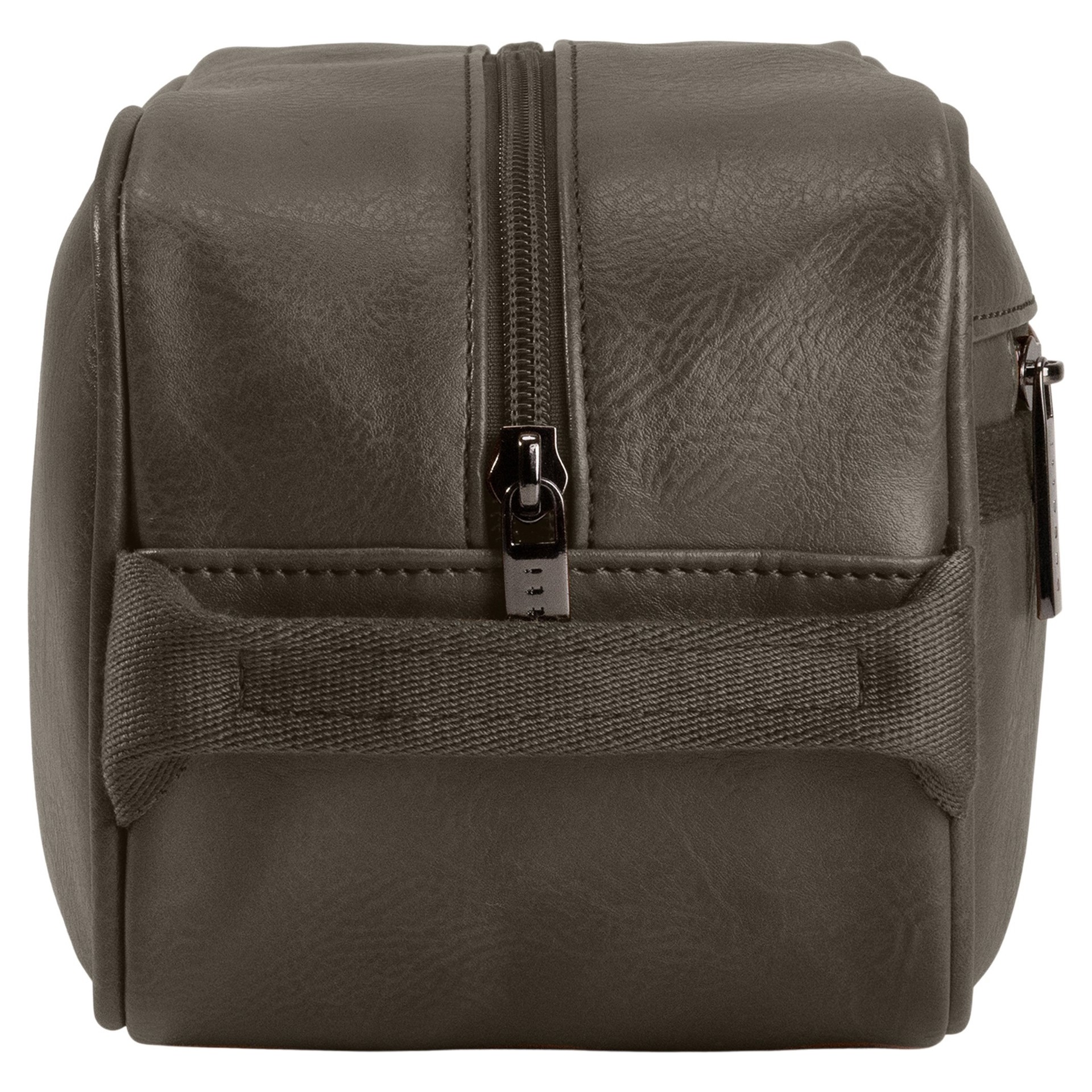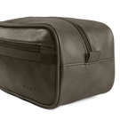 Crafted from premium vegan leather adorned with canvas trim, this exquisite toiletry bag seamlessly combines style and functionality.