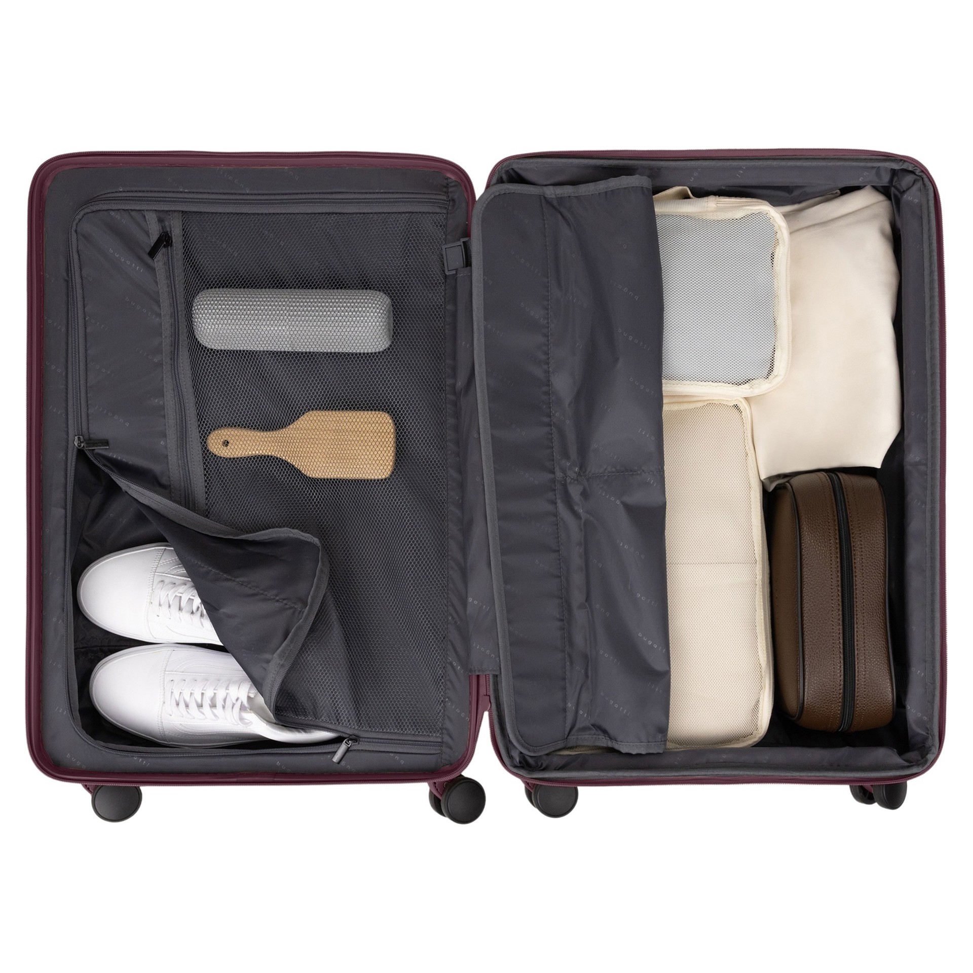 These suitcases are equipped with 8 swivel wheels for smooth and precise control, as well as a TSA lock for added security.