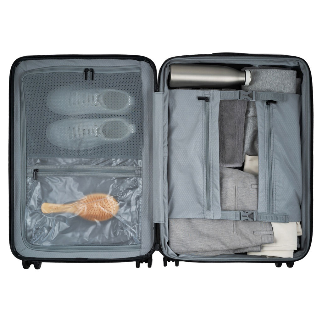 The Oslo collection by Bugatti is a chic and practical luggage set, perfect for all your travels. With its elegant design and durable construction, this collection combines style and functionality. Easy to maneuver and lightweight, it remains strong and secure. Featuring a telescopic trolley handle that locks into two distinct positions, 8 spinner wheels for precise control, and a TSA lock, the Oslo collection is ideal for travelers seeking a worry-free journey.