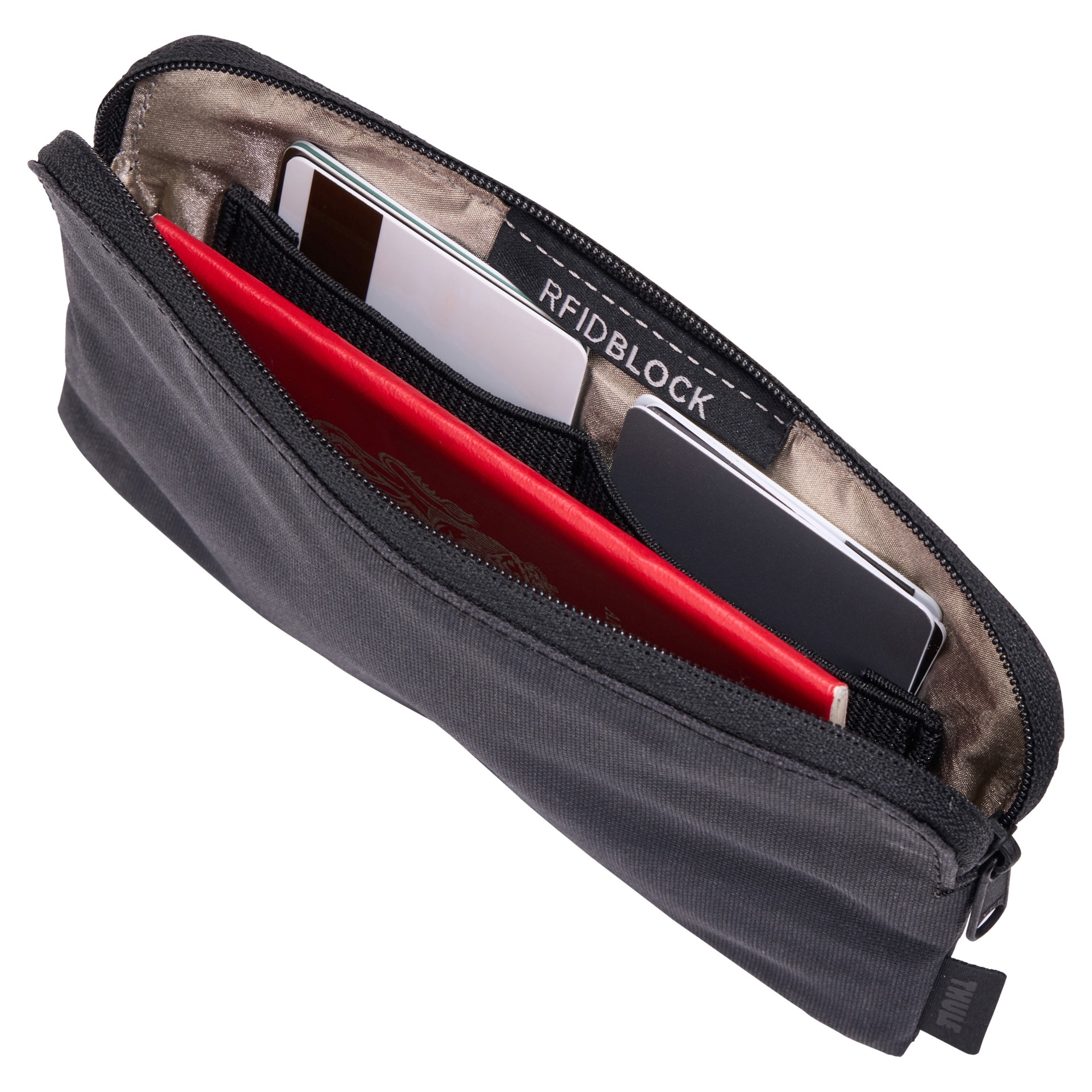 • Zippered pocket specifically designed to block RFID scanning.