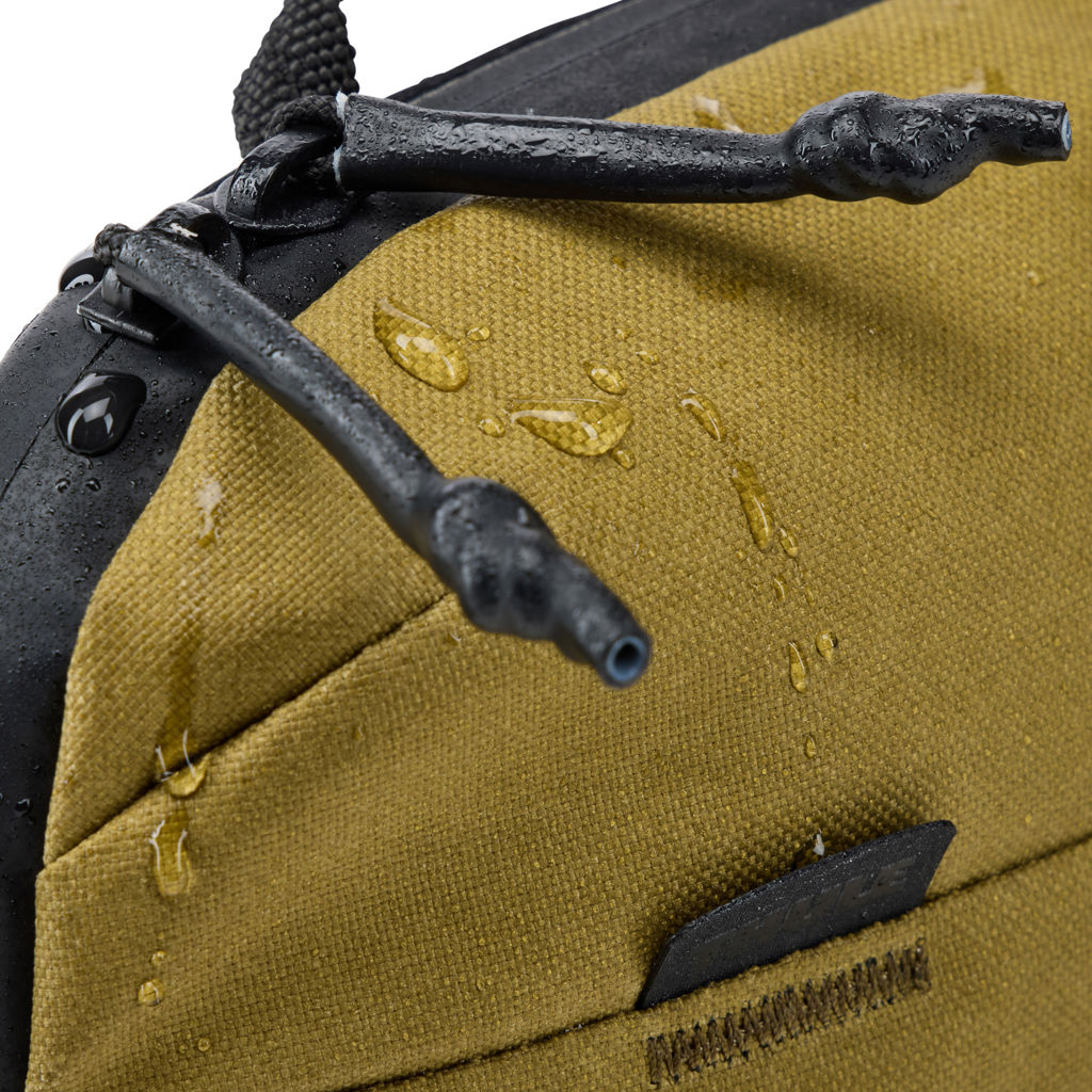 • Water-resistant zipper and waxed canvas exterior protect belongings from the elements