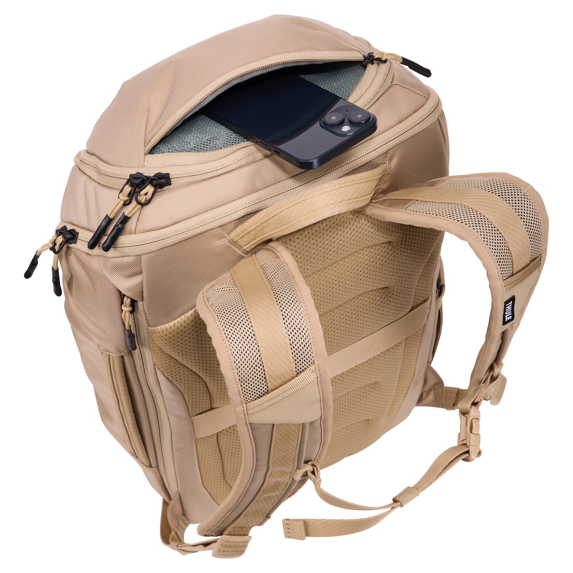 • Quick access to phone and small items with a soft-lined top zip pocket and mesh sides
