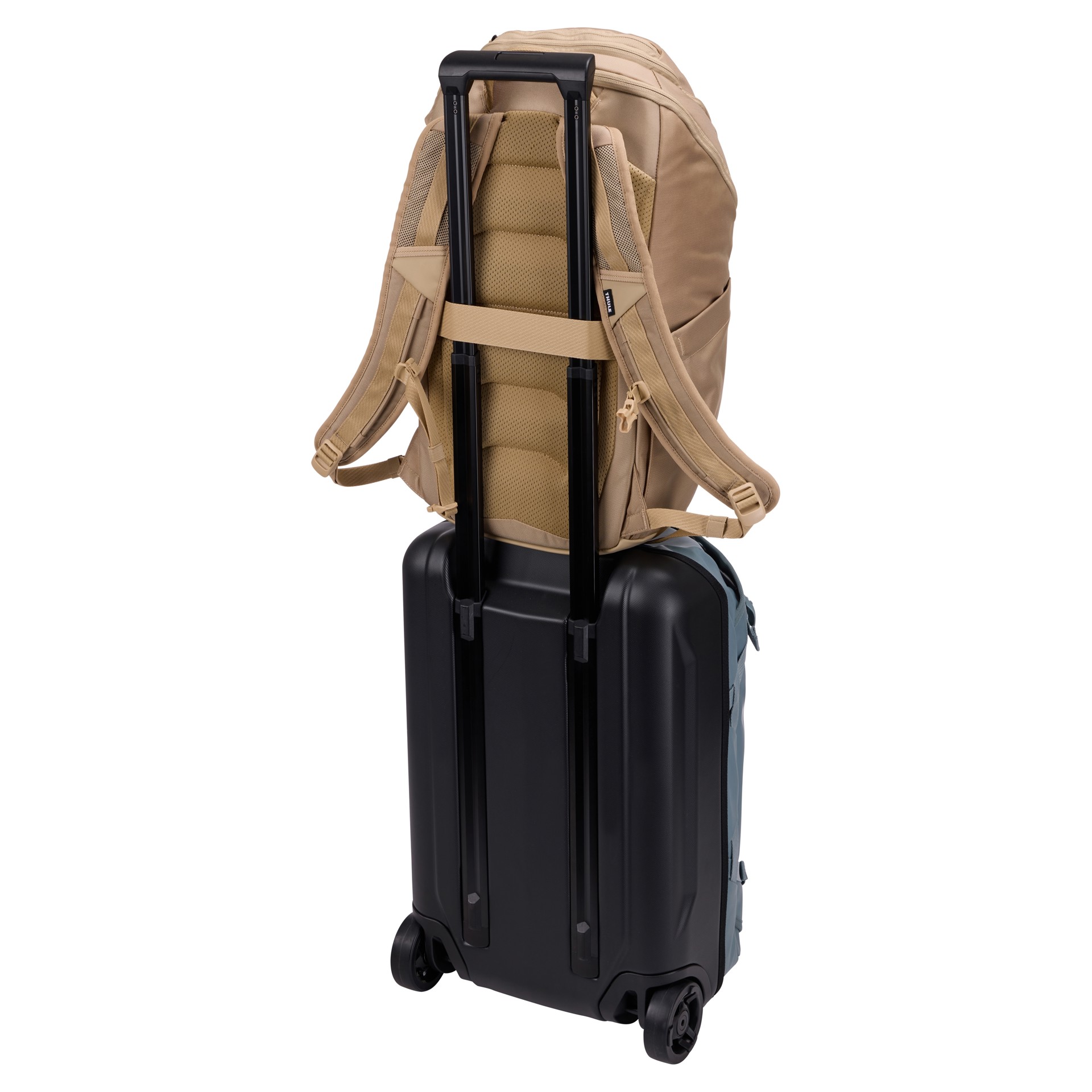 • Luggage pass-through strap lets you secure the backpack to rolling luggage for effortless travel