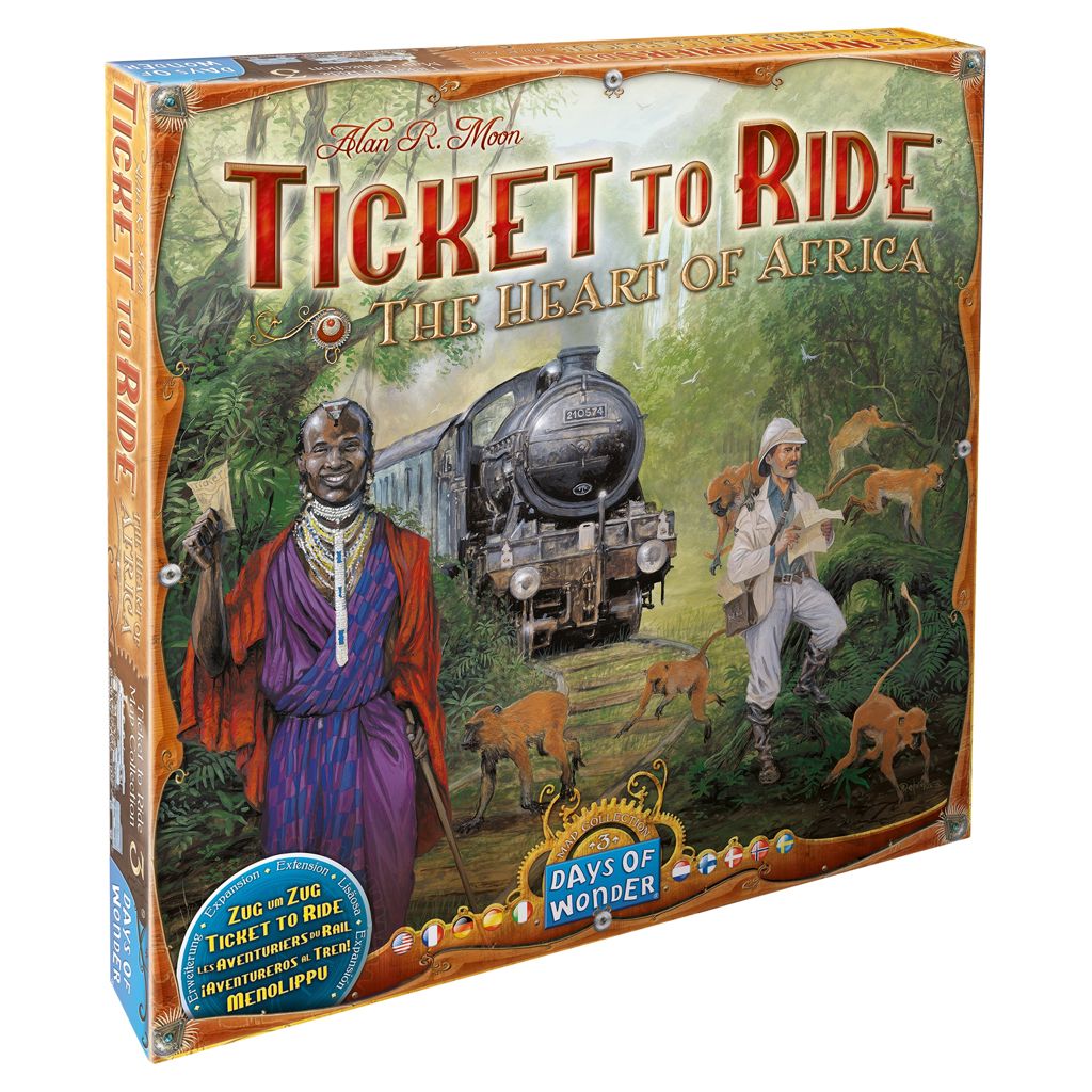 Ticket to Ride: Africa takes you deep into the savannas of southern and central Africa. This expansion introduces new Terrain Cards, which are linked to routes of different colors and can be used to double your points!