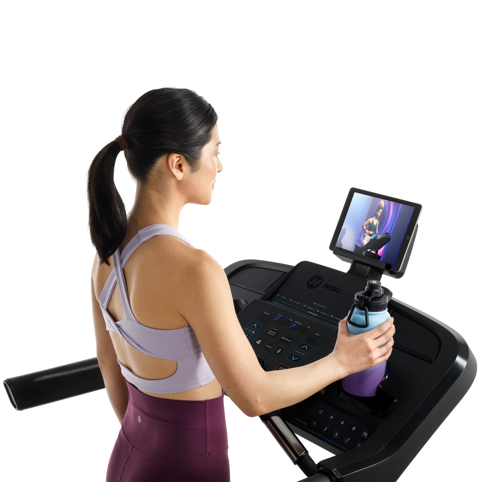 - Integrated device holder makes it easy to keep your tablet or phone in view for instructor-led entertainment and exercise classes