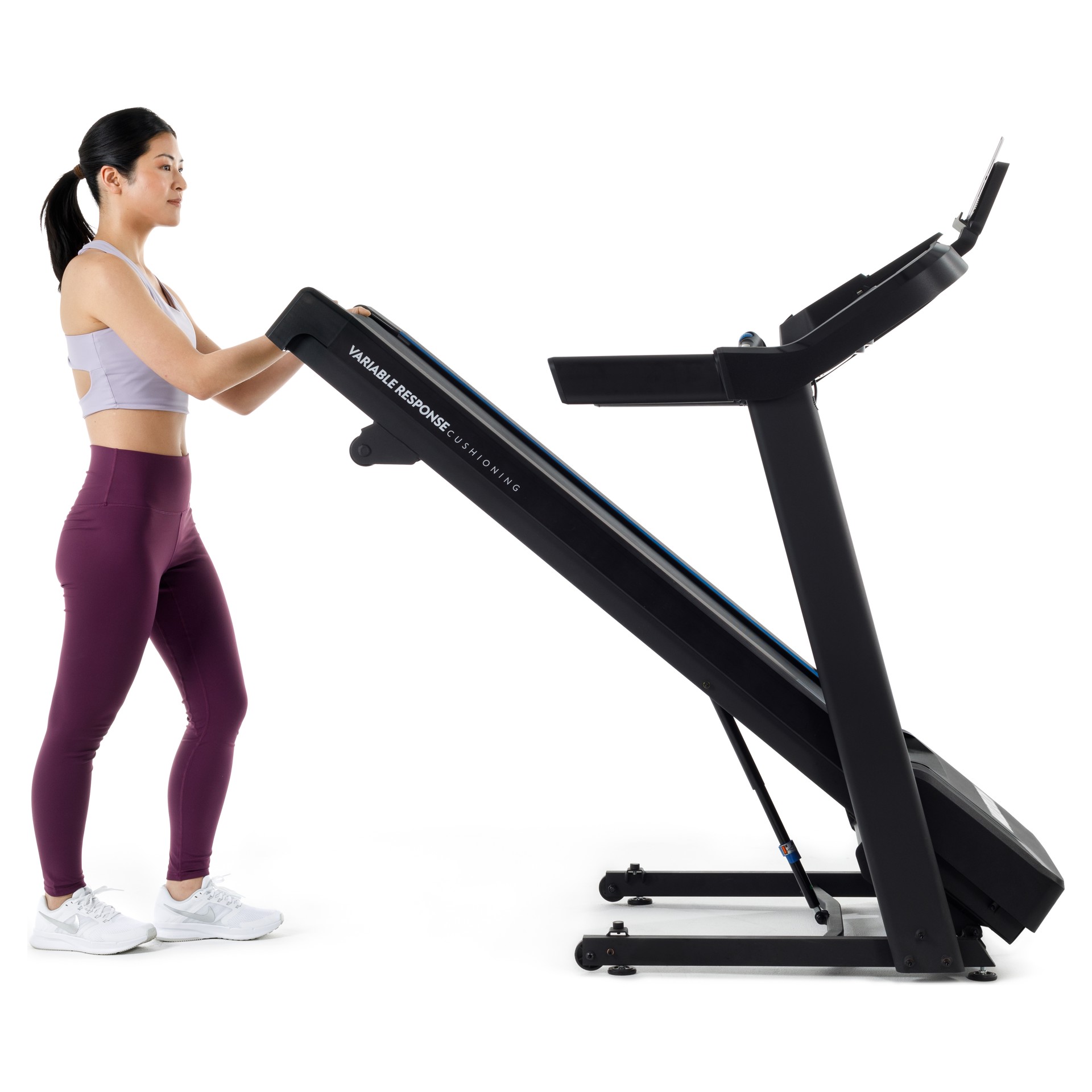 Enjoy the sturdiness of a traditional treadmill with the convenience of a folding frame, thanks to our effortless hydraulic folding system that makes it easy to store between workouts.