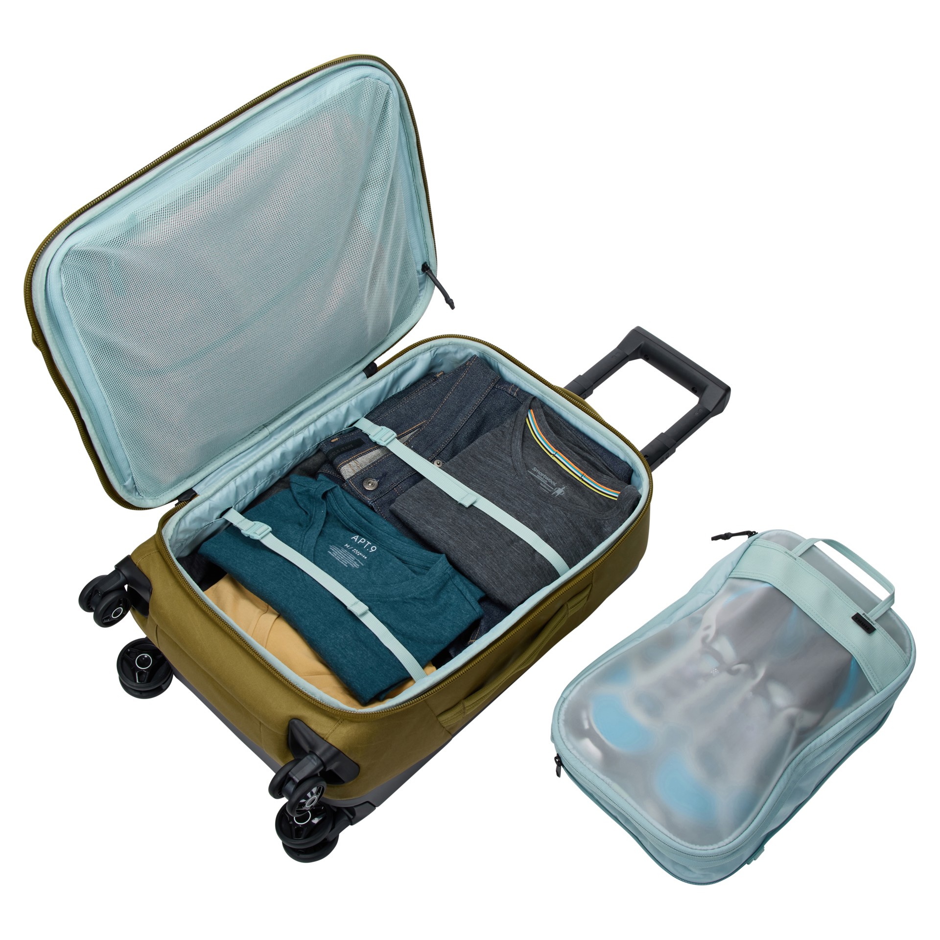 The Thule Aion Carry-On is a durable travel bag for commuting or adventure, featuring a removable compression packing cube that maximizes storage space and can also be used independently as a travel bag.
