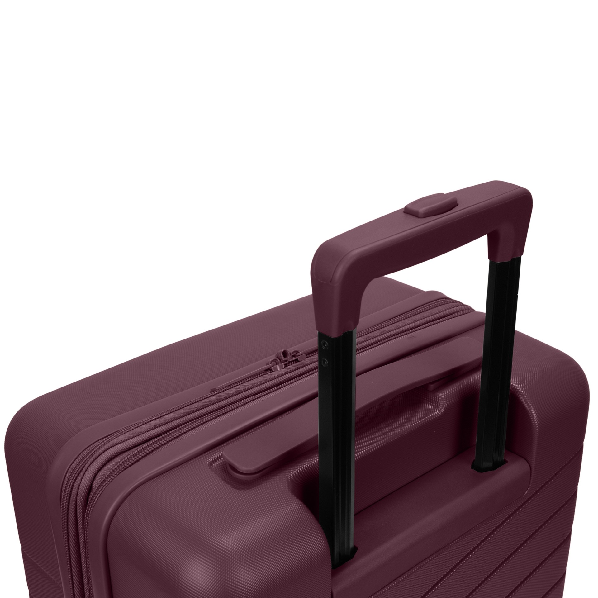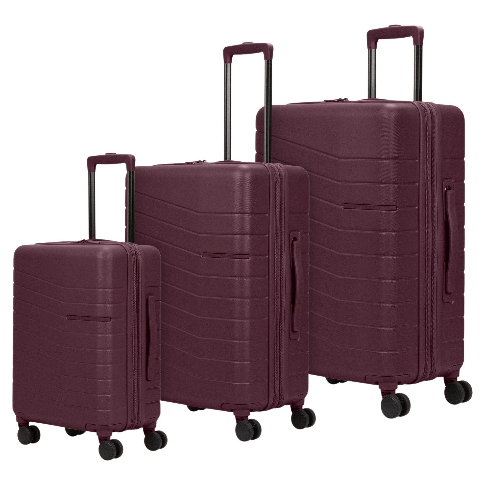 The 3-piece luggage set includes a carry-on, a medium-sized suitcase, and a large suitcase.