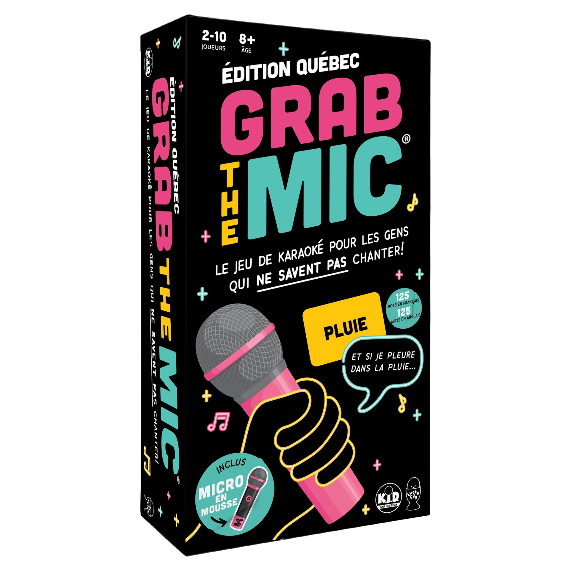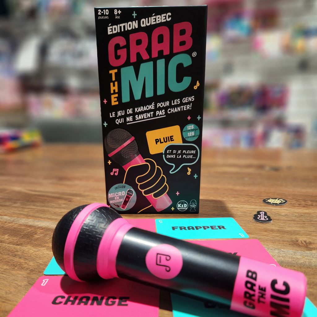 The viral party game Grab the Mic is finally available in French with this Québec Edition, featuring 125 words in French and 125 words in English for even more song possibilities!