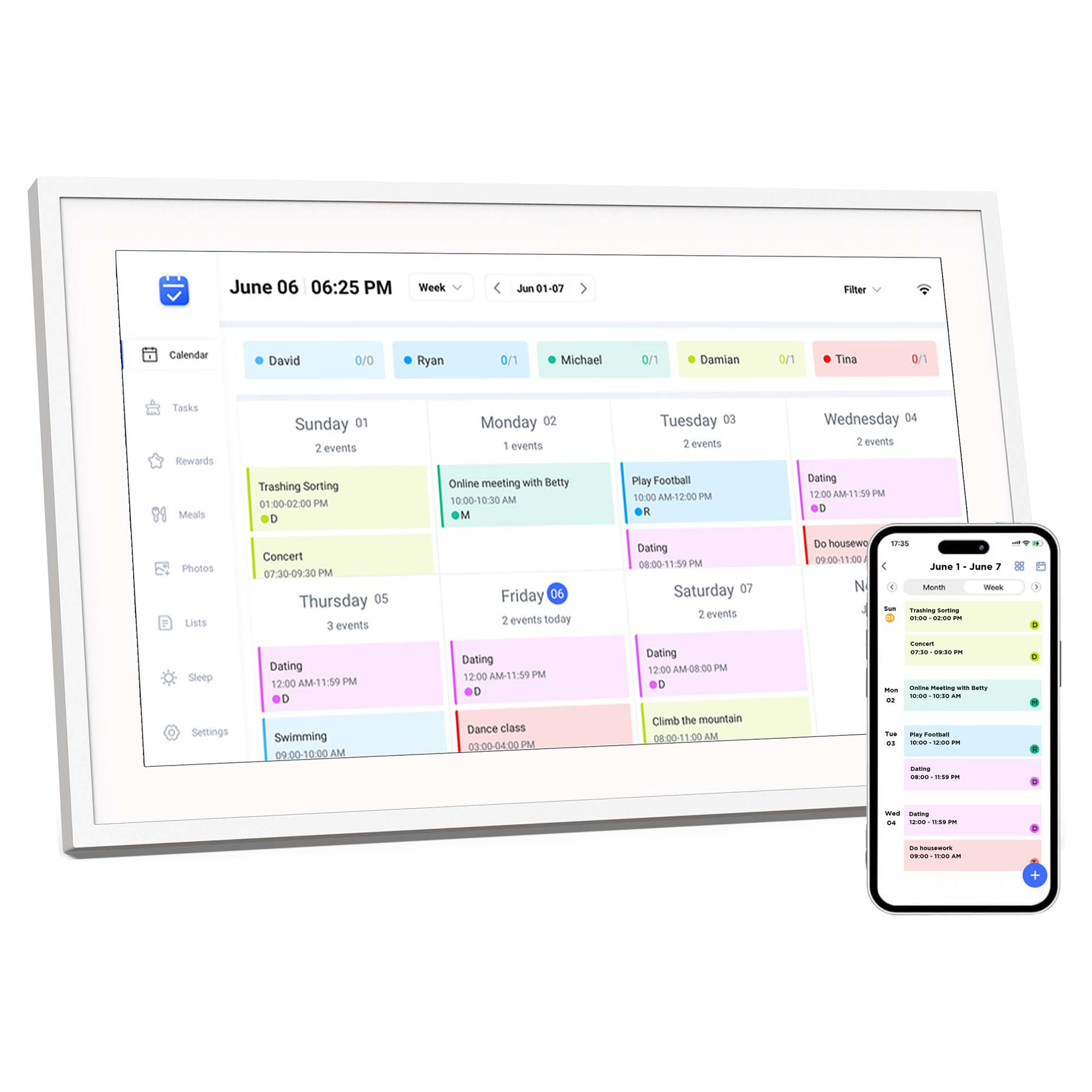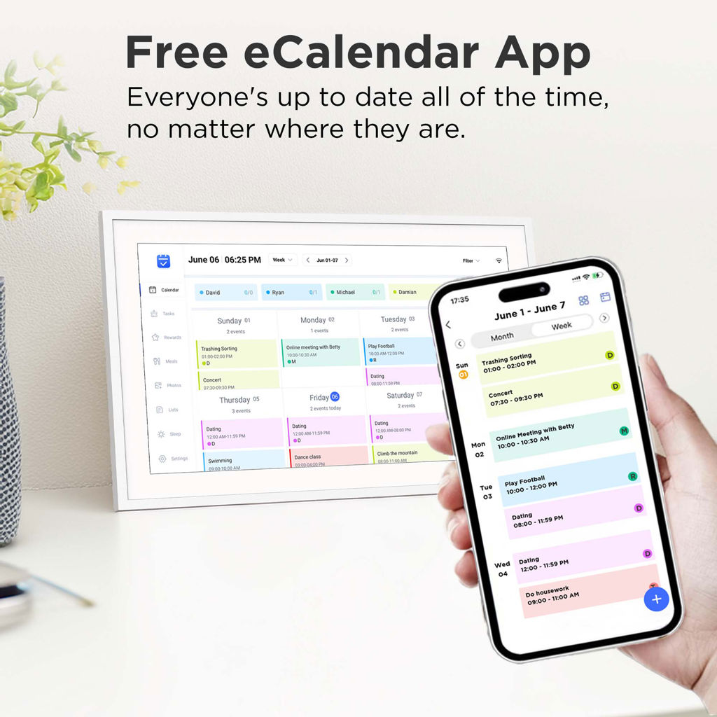 All-in-one digital family calendar and task board - Automatic synchronization with Google, iCloud, Outlook, Cozi, and Yahoo for seamless schedule management