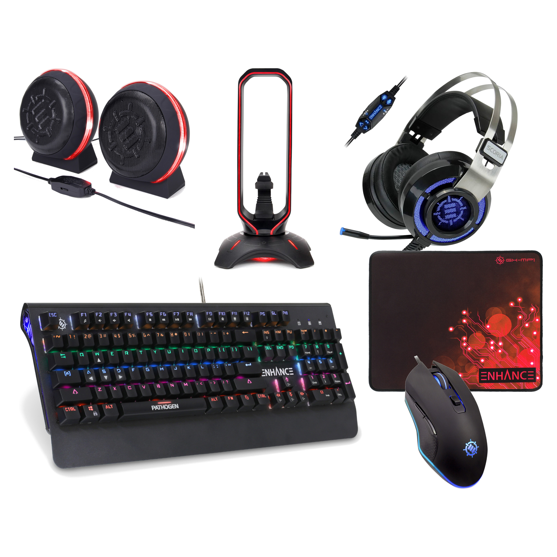 The black Enhance Pathogen 2 mechanical gaming keyboard is designed for the gamer who wants the performance offered by blue, tactile, clickable switches. Ideal for RPGs and strategy, the keyboard is ideal for all types of gaming.