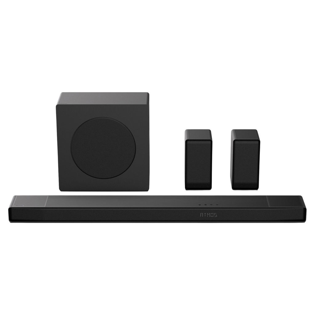 With the Hisense AX5140Q soundbar, enjoy rich, immersive audio that takes every movie, series, or game to the next level. Its 5.1.2-channel system delivers a wide, precise soundstage, while the upward-firing speakers create realistic overhead effects. With a total power output of 600 W, it delivers dynamic, detailed performance, perfect for recreating the theater experience at home.