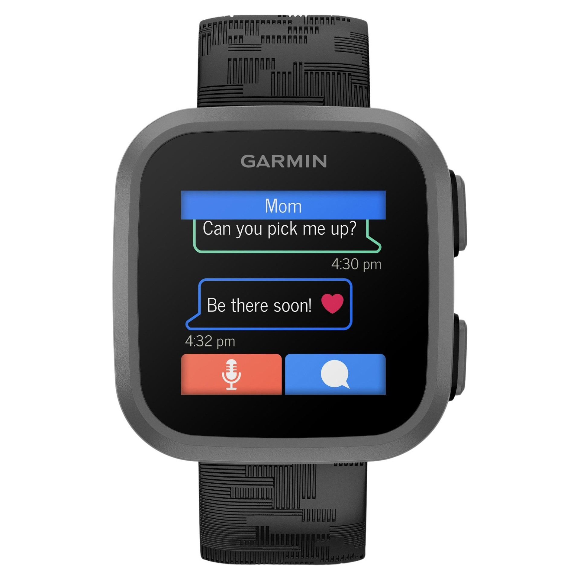 Use the Garmin Jr. app to send voice messages to your child’s Bounce watch and receive voice replies.