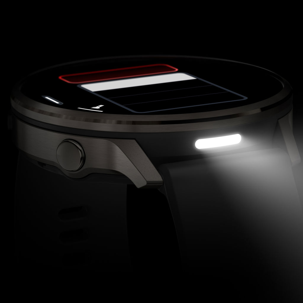 A built-in LED flashlight provides illumination when you need it. Make and take phone calls directly from your wrist when paired with your smartphone. Control watch functions with voice commands, or use your smartphone’s voice assistant to repond to text messages and more.