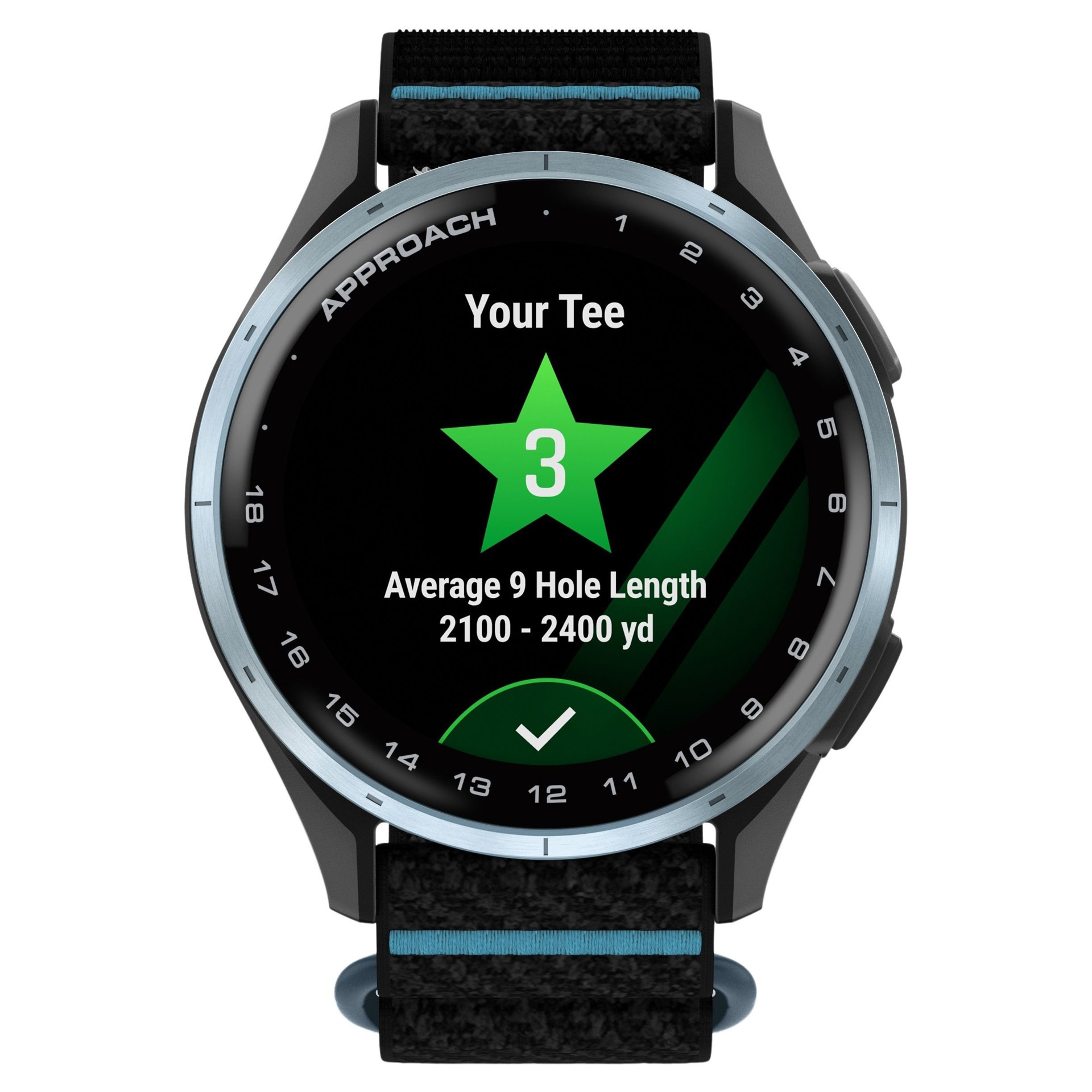 Approach J1 is a slim, lightweight GPS golf watch designed for young golfers. It features a ComfortFit fabric strap, a simplified interface, and functions focused on learning and skill development.