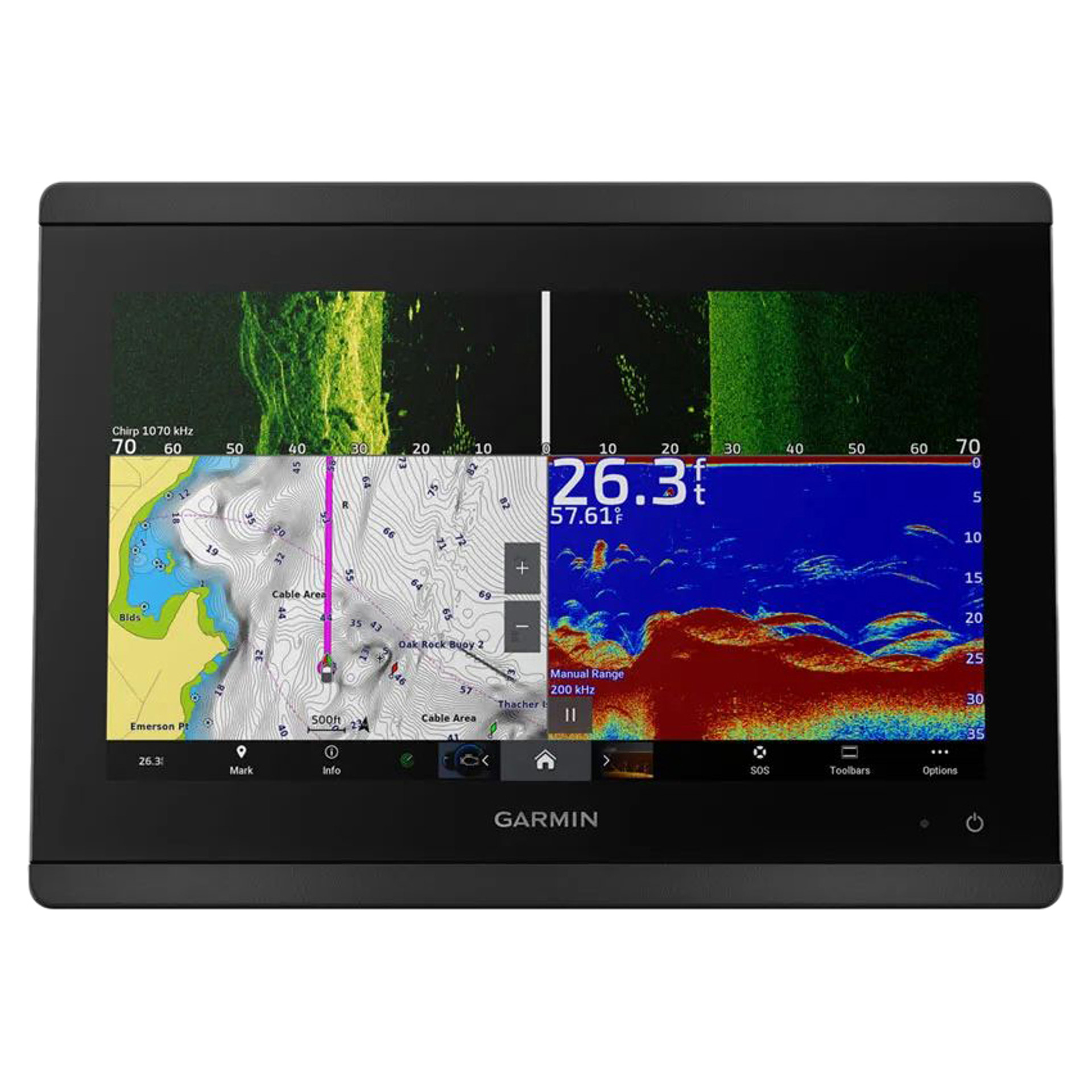- See what’s below and around your boat with built-in sonar capability (transducers sold separately)