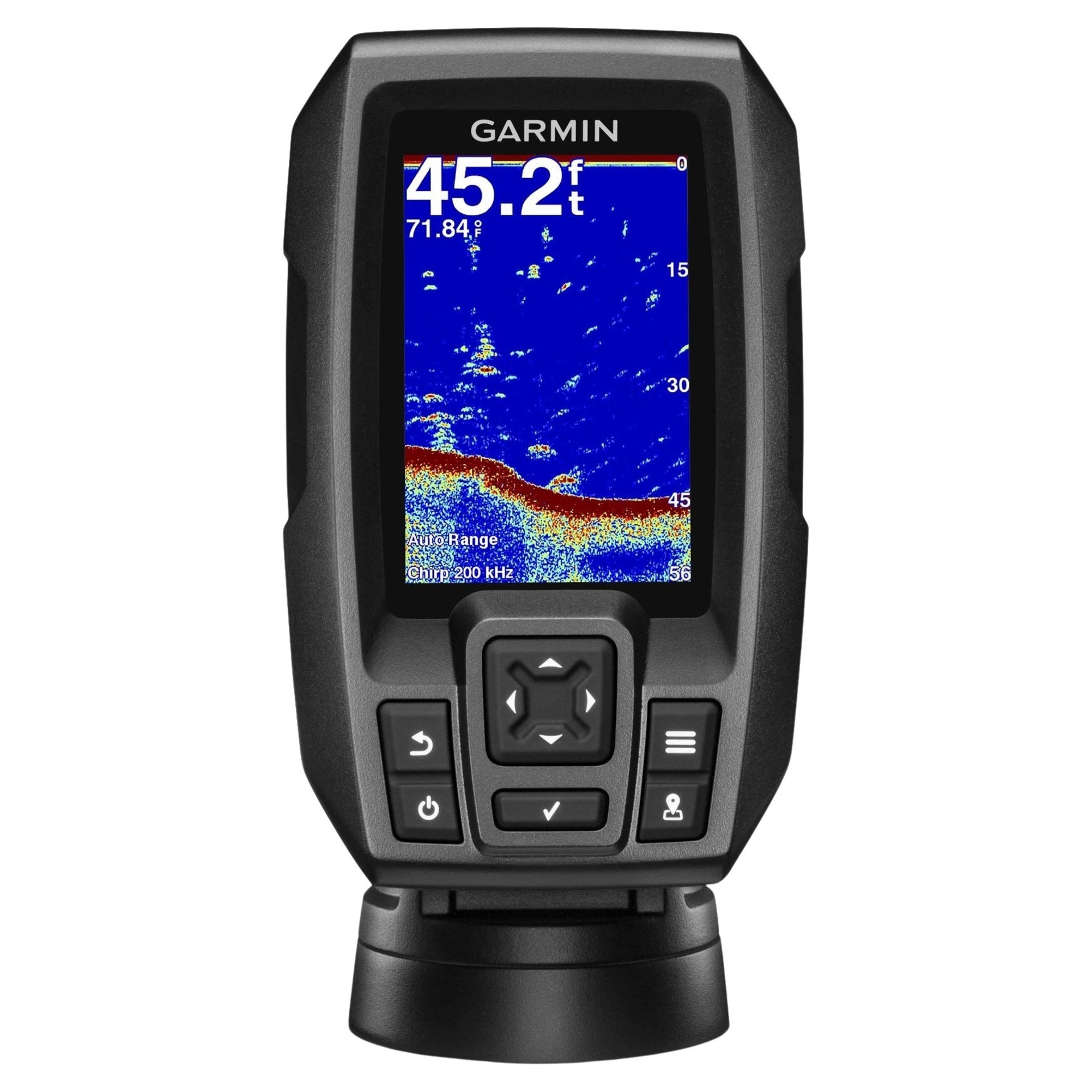 Experience the Clarity of CHIRPSTRIKER 4 fishfinder includes a Garmin CHIRP (77/200 kHz) transducer, which provides a visibly higher level of clarity and detail for fish and structure than traditional 77/200 kHz transducers.