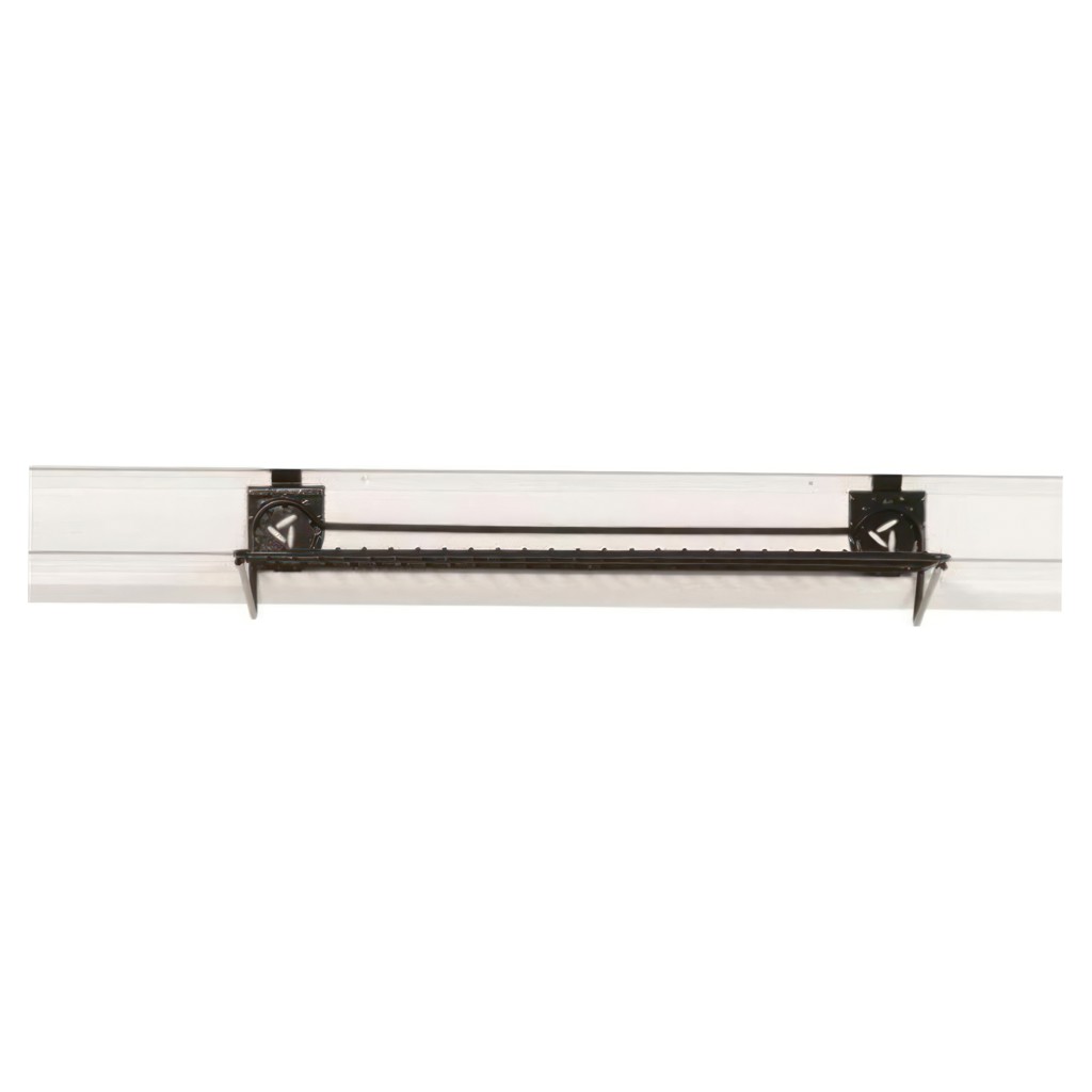 This 24" (61 cm) Gladiator shelf provides storage for frequently used items without cluttering the floor. The heavy-duty wire shelving accommodates up to 35 pounds (15.9 kg) per shelf and can easily be relocated to other Gladiator wall systems. Friction locking tabs keep this wire shelf securely fastened to the wall.