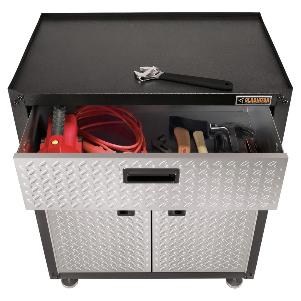 The GearBox 3/4 Door Modular Cabinet is ready to assemble and features one drawer and two doors for maximum storage versatility. This large cabinet includes an adjustable shelf and can accommodate a wide variety of tools and garage equipment. You can add casters and create a mobile workstation. This garage cabinet is ideal for storing small automotive or garden tools, or painting supplies, while keeping them within easy reach. Plus, its design makes assembly quick and easy.