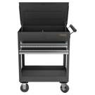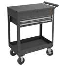 The 2-drawer utility cart is easy to move, so you can take your tools right to your latest project. Four heavy-duty 5" swivel casters are welded to the bottom tray for structural durability and smooth mobility.