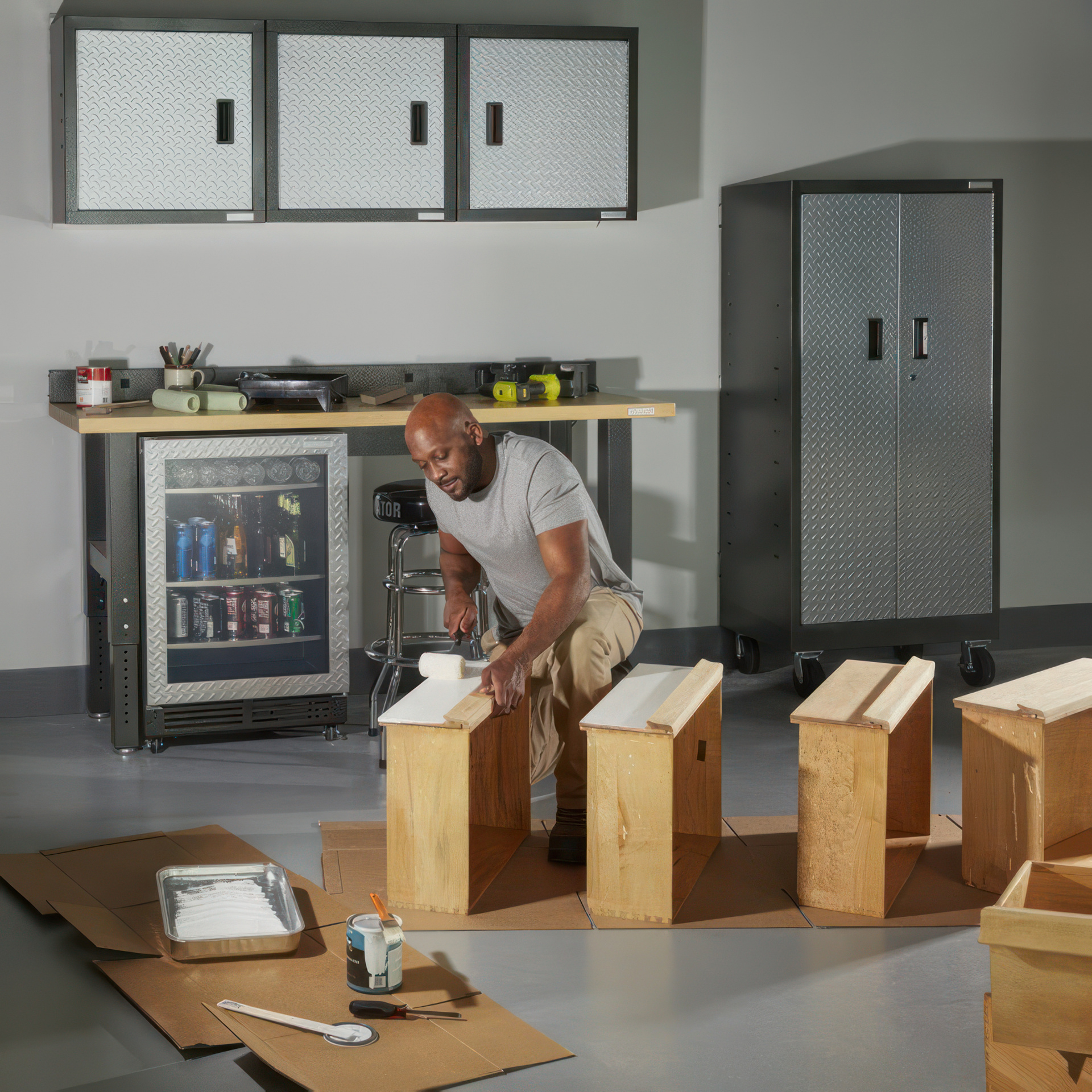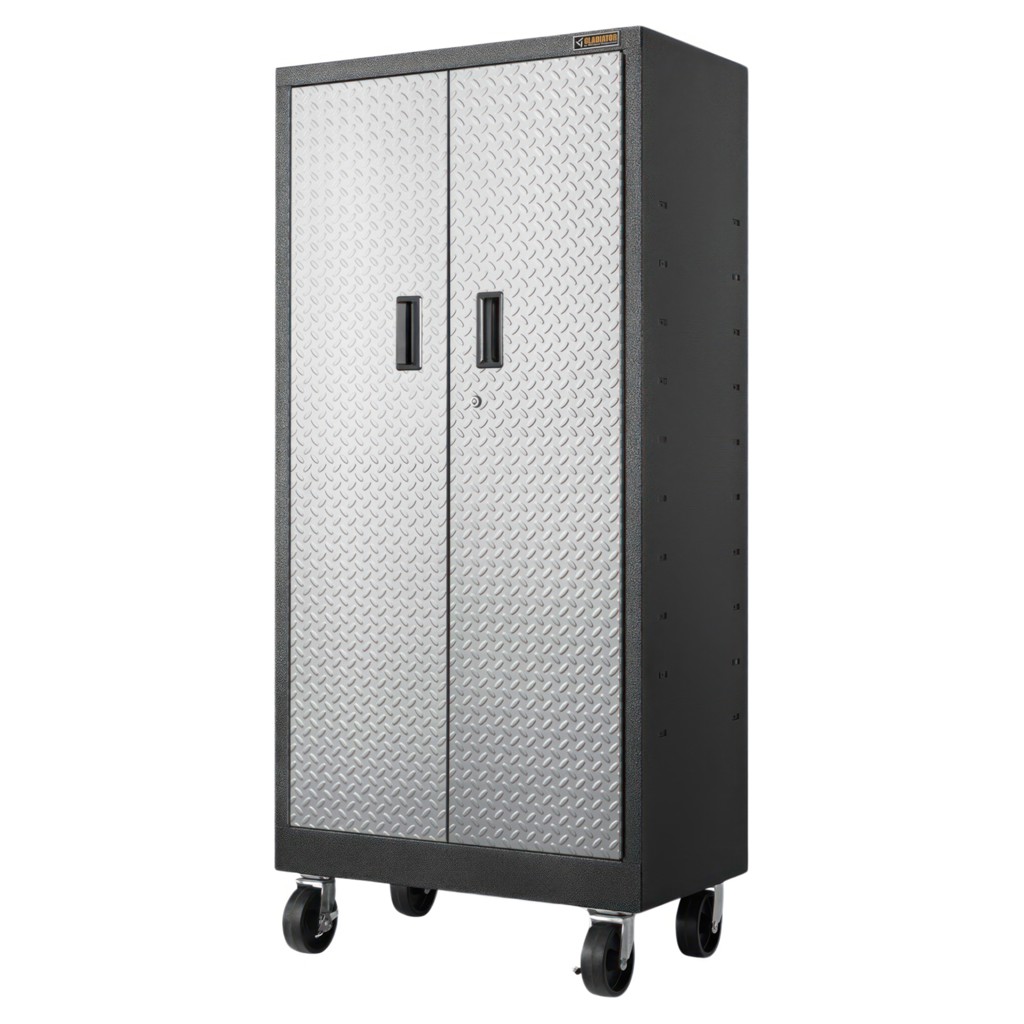 The Premier Tall GearBox is over five feet high and comes with three full-width shelves. The two large doors lock for added security. This cabinet stands on sturdy casters to meet ever-changing storage needs, and when you need to remove your cabinets from the floor, the GearBox mounts easily onto Gladiator® wall systems. The Tall GearBox is covered by a hassle-free limited lifetime warranty.