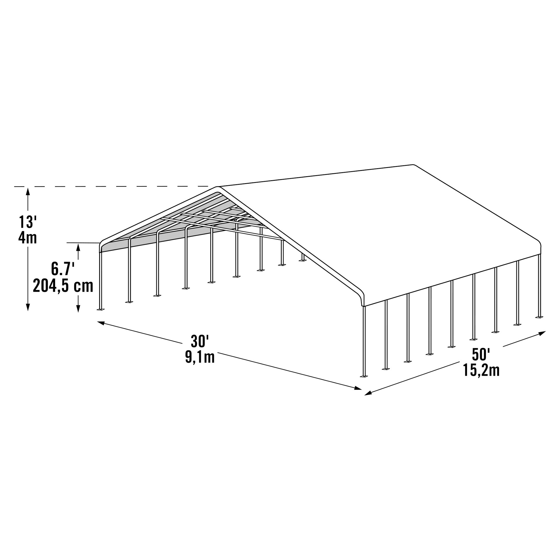 The ShelterLogic UltraMax 30' x 50' to 16' awning provides shade and protection for your events, vehicles or valuables, right in your backyard.