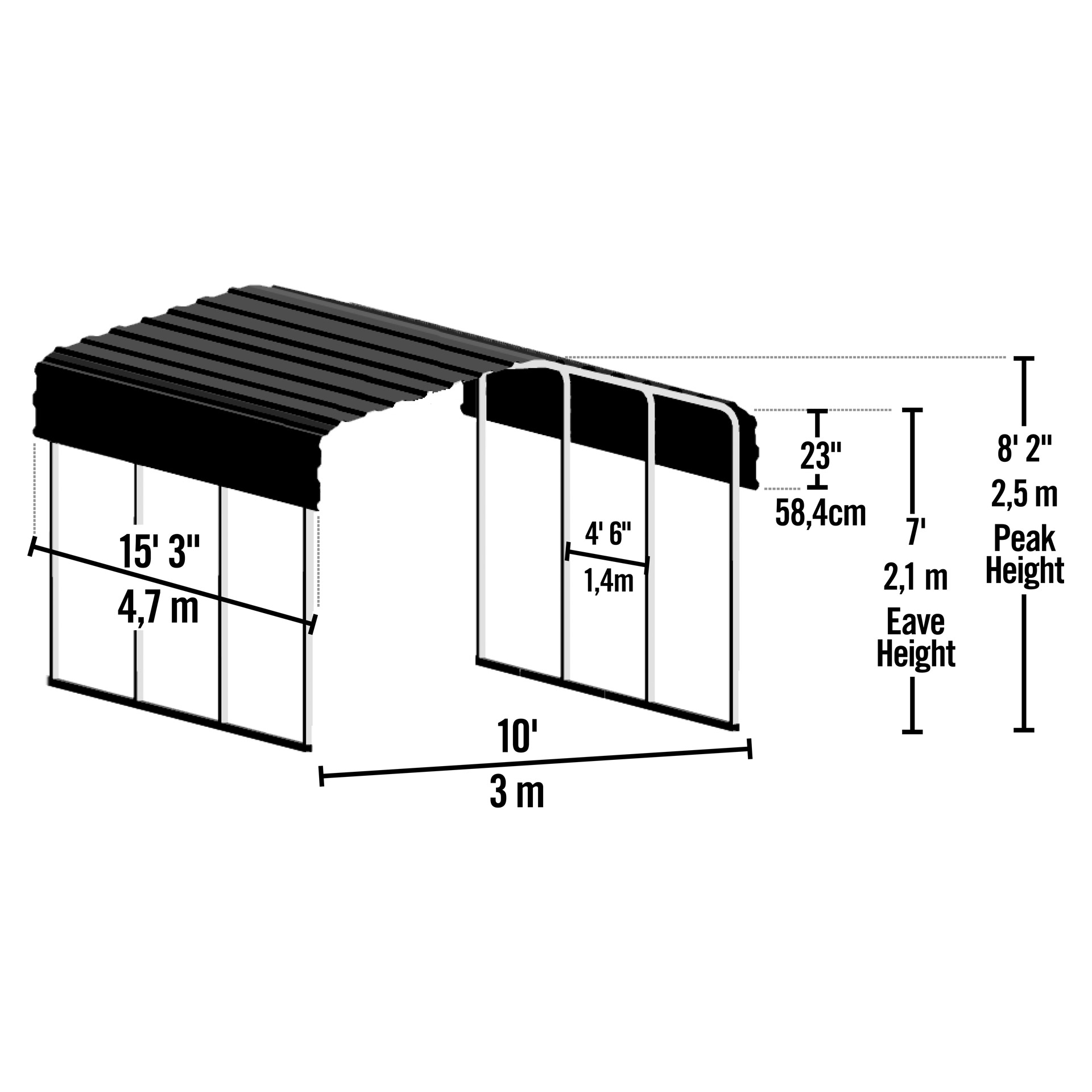 Arrow Sheds' 10' x 15' Carport is a more compact, all-steel carport that fits small vehicles, sedans, outdoor equipment and more.