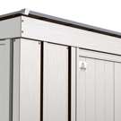 The Arrow Classic is also a beautiful unit. The shed's timeless vertical wall panels are finished with a smooth, durable Valspar polyester paint that protects against the elements and seals the steel against rust and corrosion.