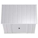 The shed is made of galvanized steel treated to prevent rust and corrosion. Its low gable roof is designed to prevent water from accumulating.