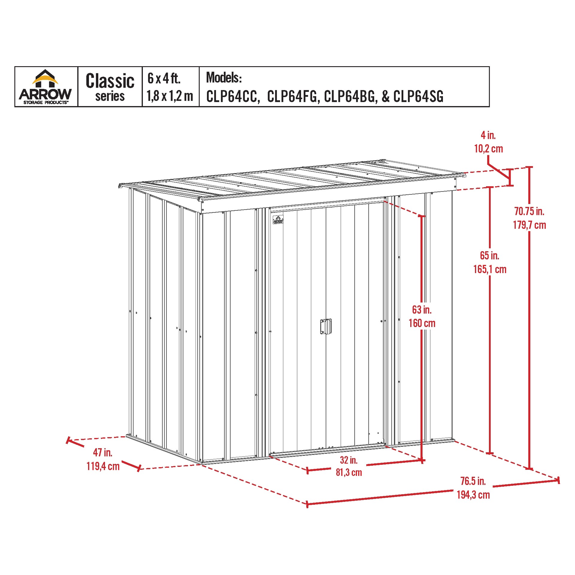 • Shed Width : 6 ft.
