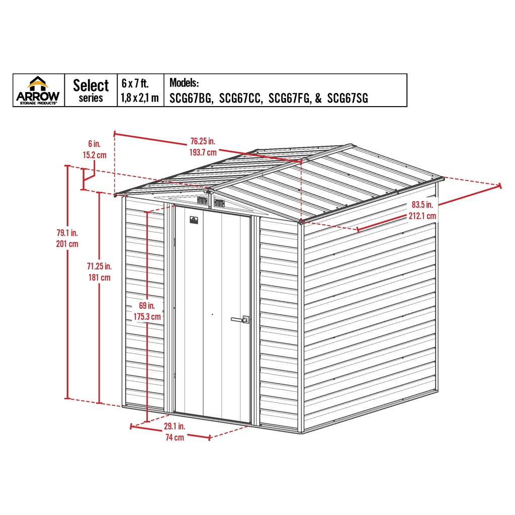 Metal shed 6 x 7 ft Arrow SCG67CC