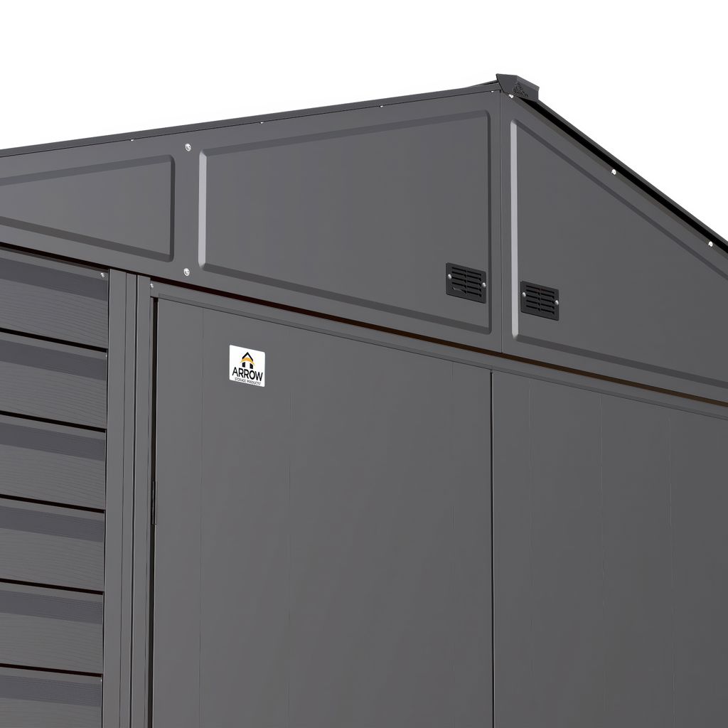 The Arrow Select line also features a high gable roof to prevent rainwater and debris build-up. Also included are built-in vents for better air circulation and a lockable door handle for added security.