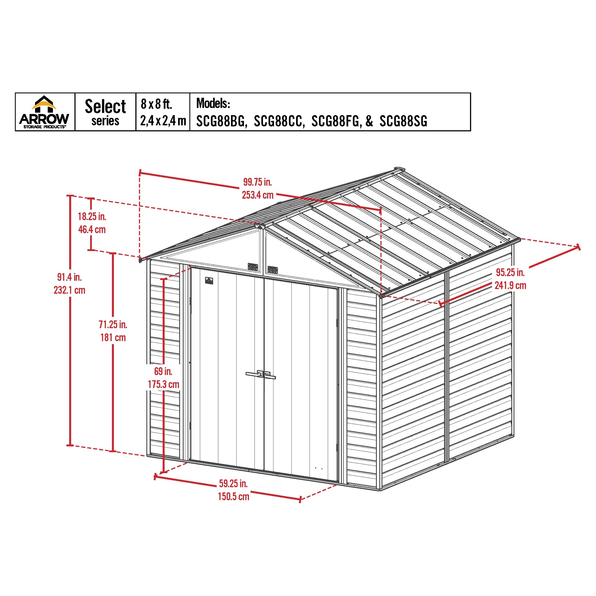 Metal shed 8 x 8 ft Arrow SCG88CC