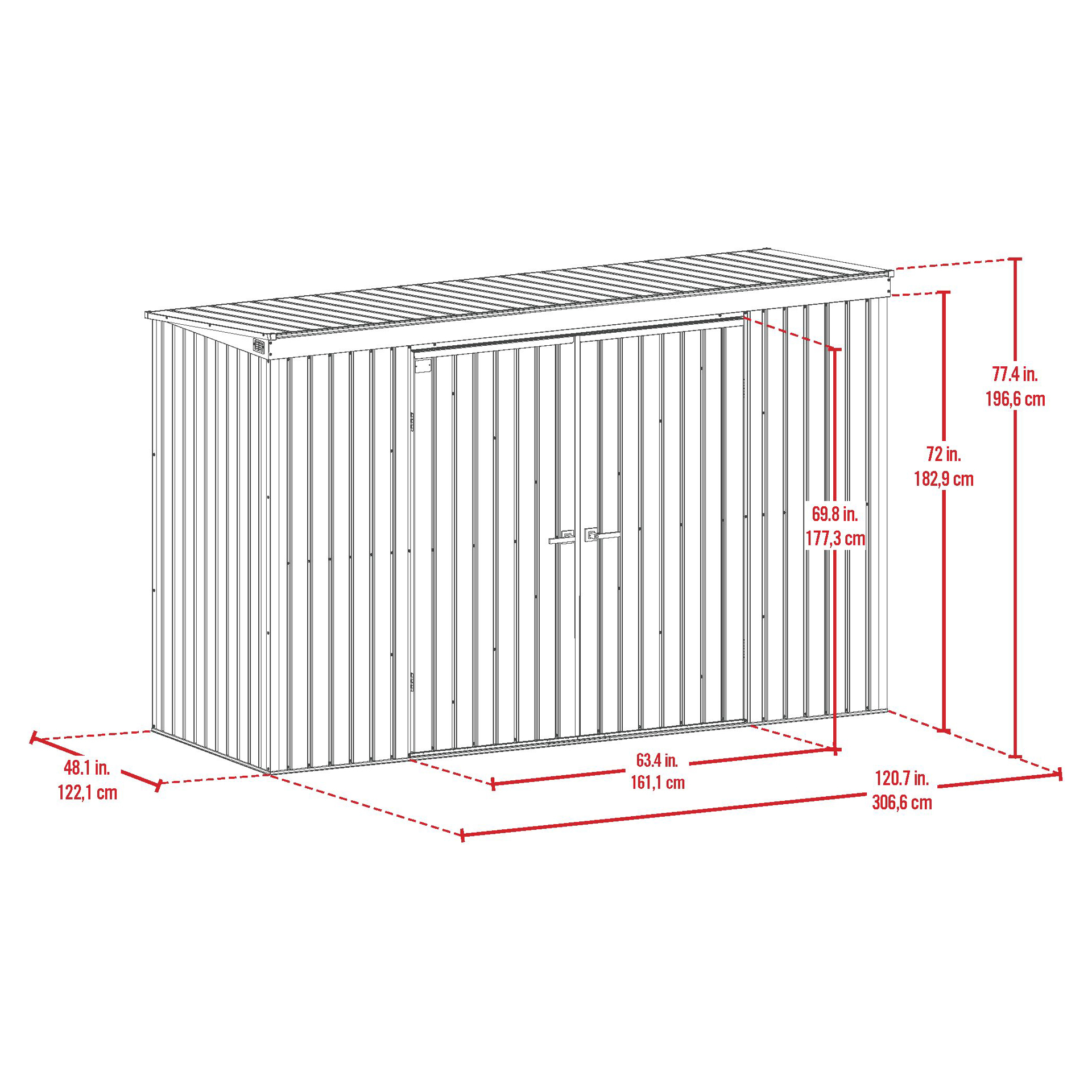 Made from Galvalume, a steel plated with aluminum and zinc for its anti-corrosive properties. This steel shed is built to last!