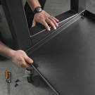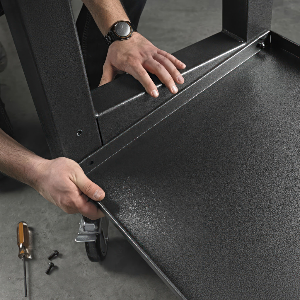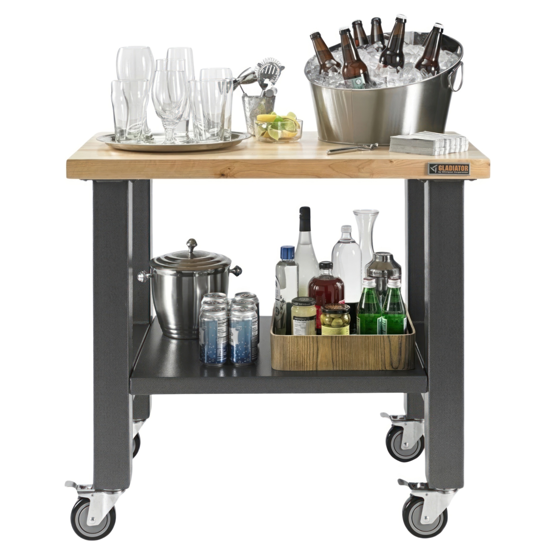 The mobile workstation combines the strength of hardwood and heavy-duty steel with the full mobility of four 360 degree swivel casters. Designed for easy maneuverability over uneven surfaces, each caster also locks securely in place to keep the workstation stable for precision projects. It’s even stylish enough to roll beside the grill for backyard gatherings.