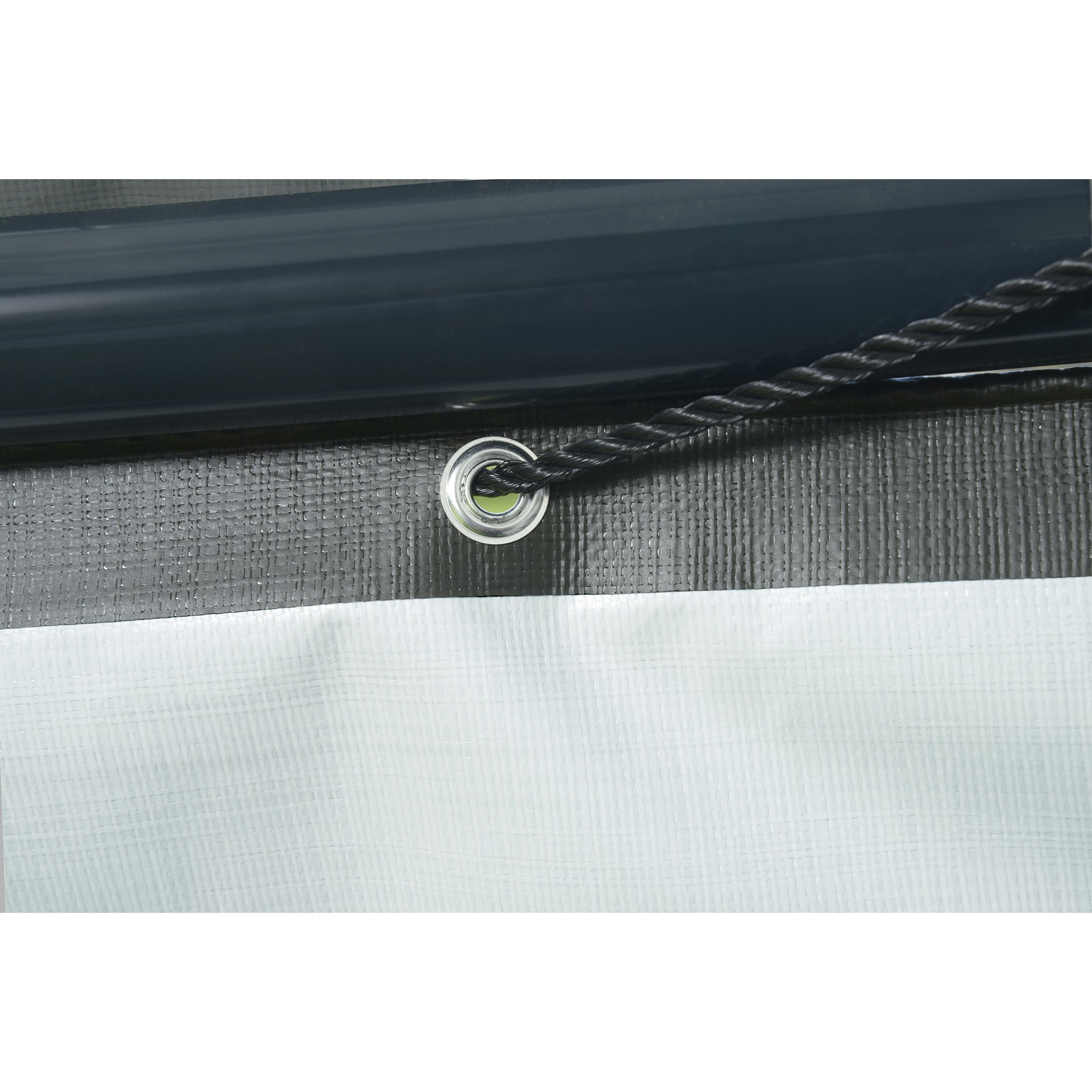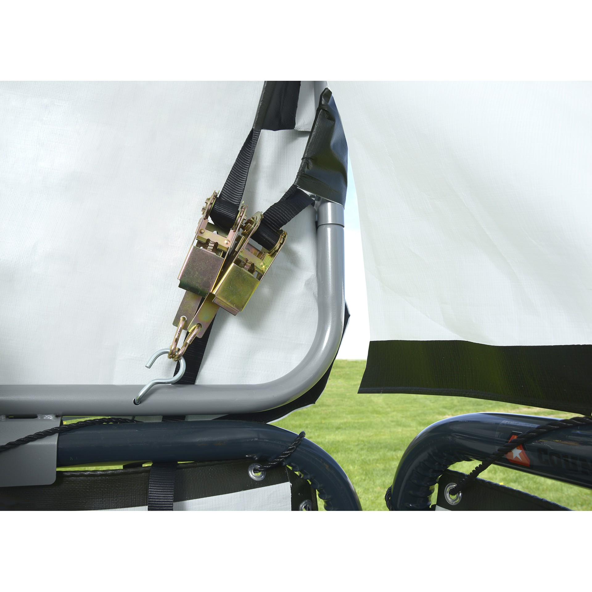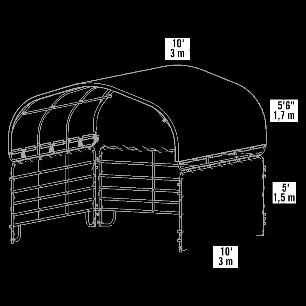 The kit fits most 10-foot Corral shelters and is easy to assemble to complement an already versatile and practical shelter. Ripstop Tough Fabric: 7.5 oz. Three-ply woven polyethylene is heat-sealed for maximum water resistance.