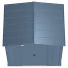The shed is made of galvanized steel treated to prevent rust and corrosion. Its low gable roof is designed to prevent water from accumulating.