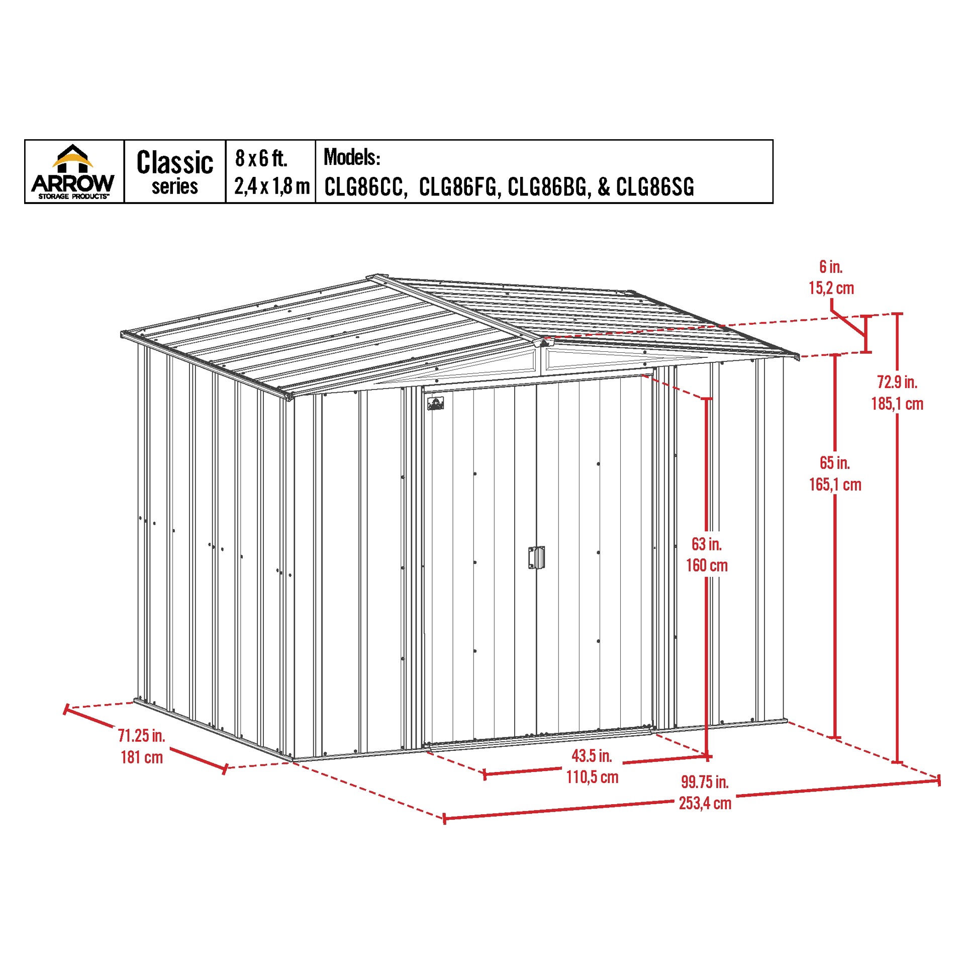 Metal Shed 8 x 6 ft Arrow CLG86BG