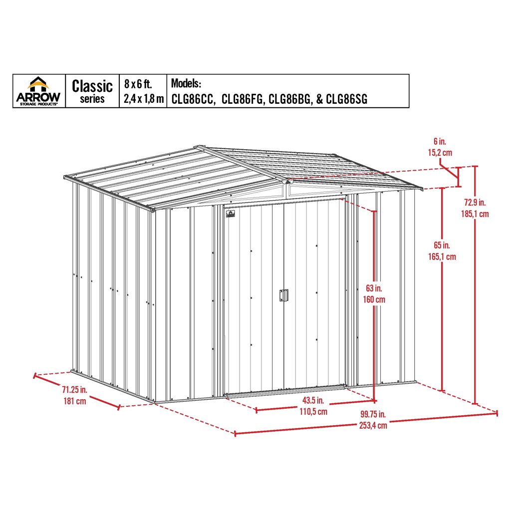 Metal shed 8 x 6 ft Arrow CLG86CC