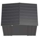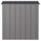 The shed is made of galvanized steel treated to prevent rust and corrosion. Its low gable roof is designed to prevent water from accumulating.