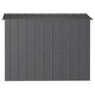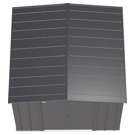 The shed is made of galvanized steel treated to prevent rust and corrosion. Its low gable roof is designed to prevent water from accumulating,