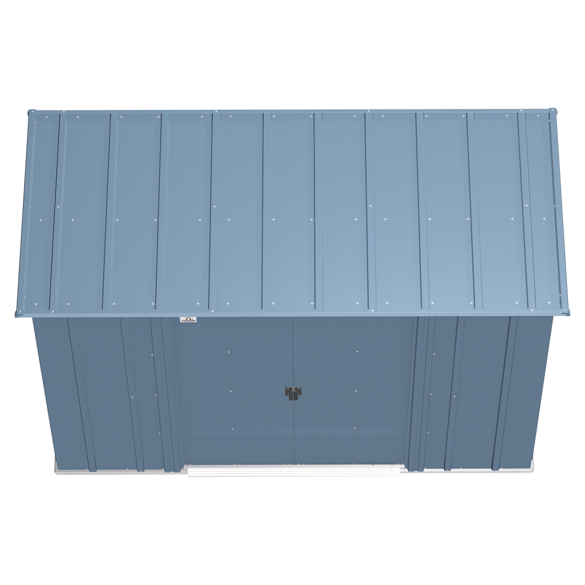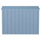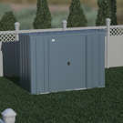 The shed is made of galvanized steel treated to prevent rust and corrosion. Its low gable roof is designed to prevent water from accumulating.
